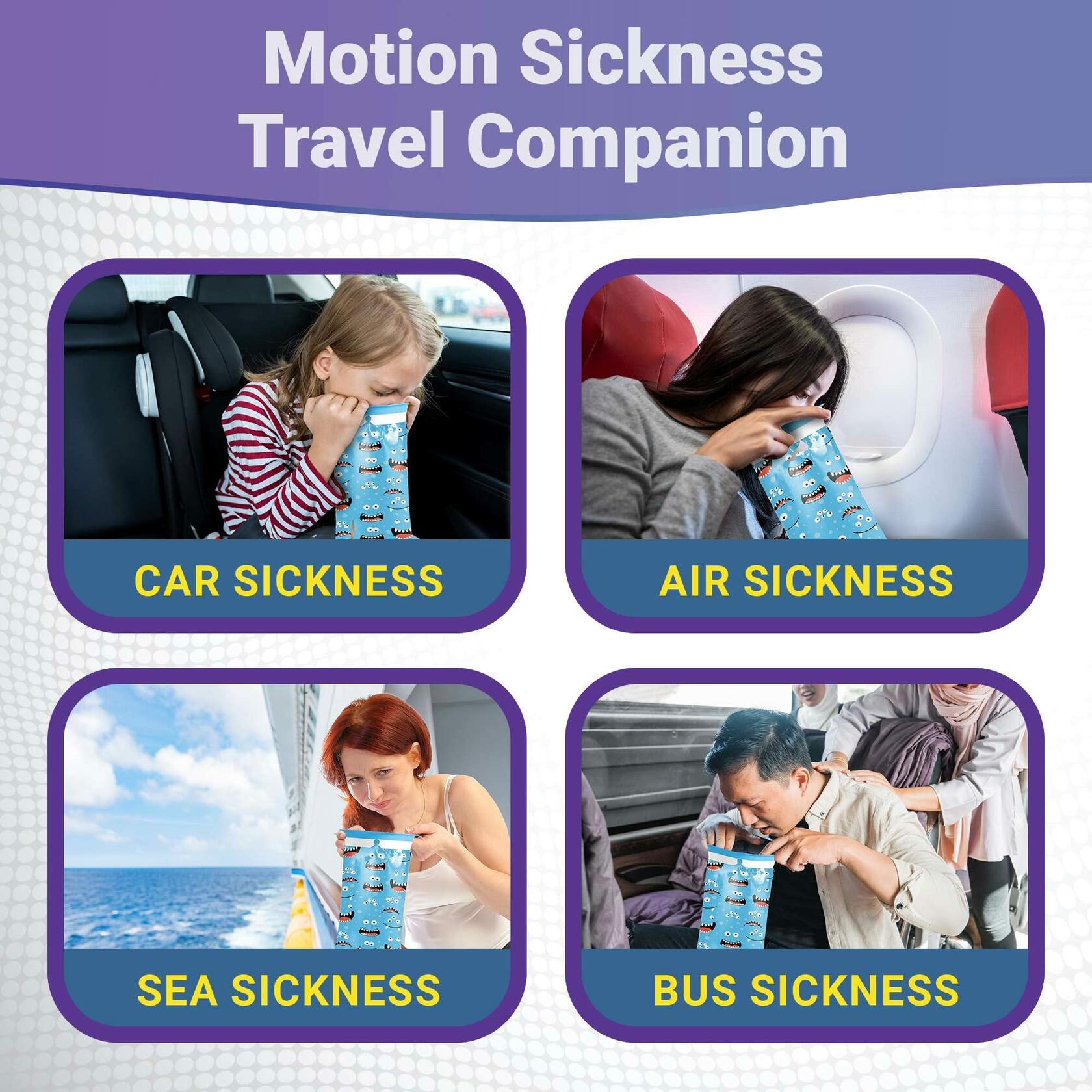 - Kid Friendly Designs - these car sick bags have adorable prints and designs that children will love, making the experience a little easier to manage! Pick from dinosaur, monster or tie dye designs