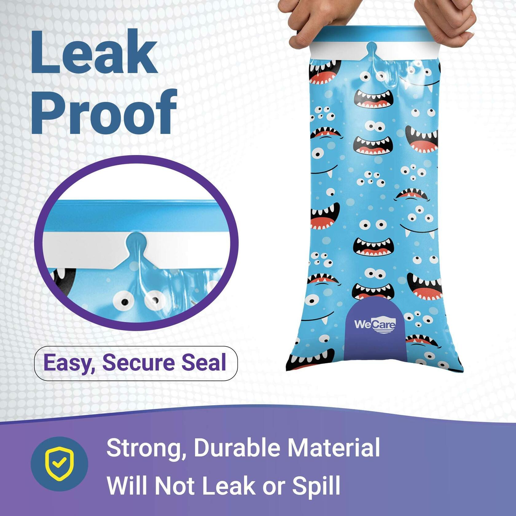 WECARE Kids Vomit Bags 5 Pack Disposable Leak Proof Self Sealing Monster Print