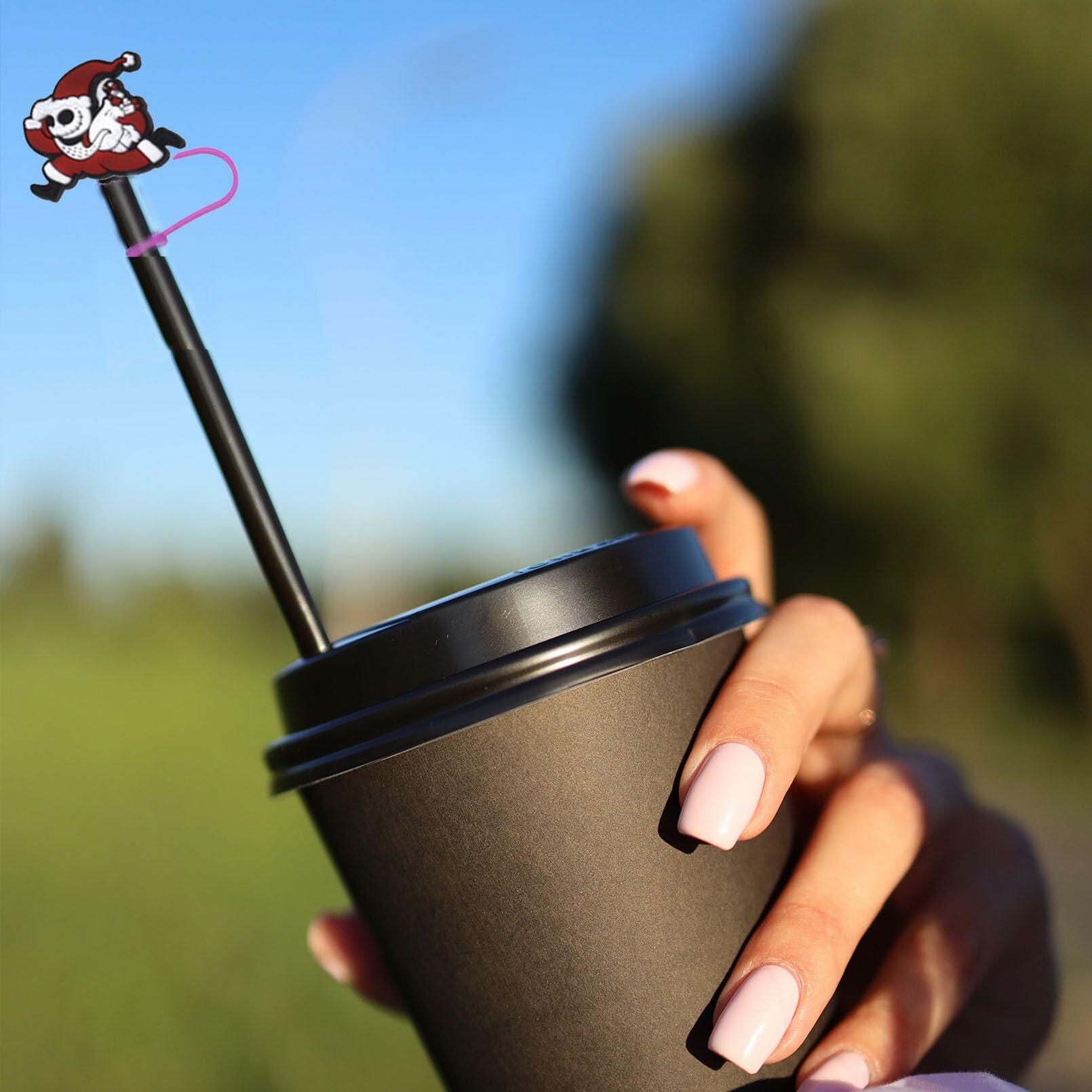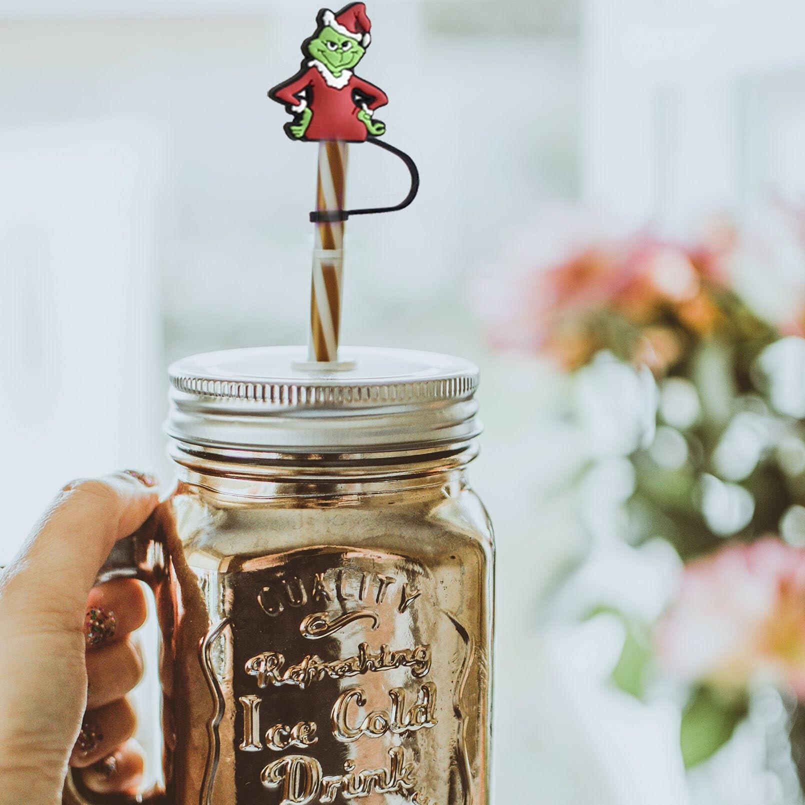 Wehnniee 8Pcs Christmas Straw Toppers 0.32in 8mm Cartoon Caps Reusable