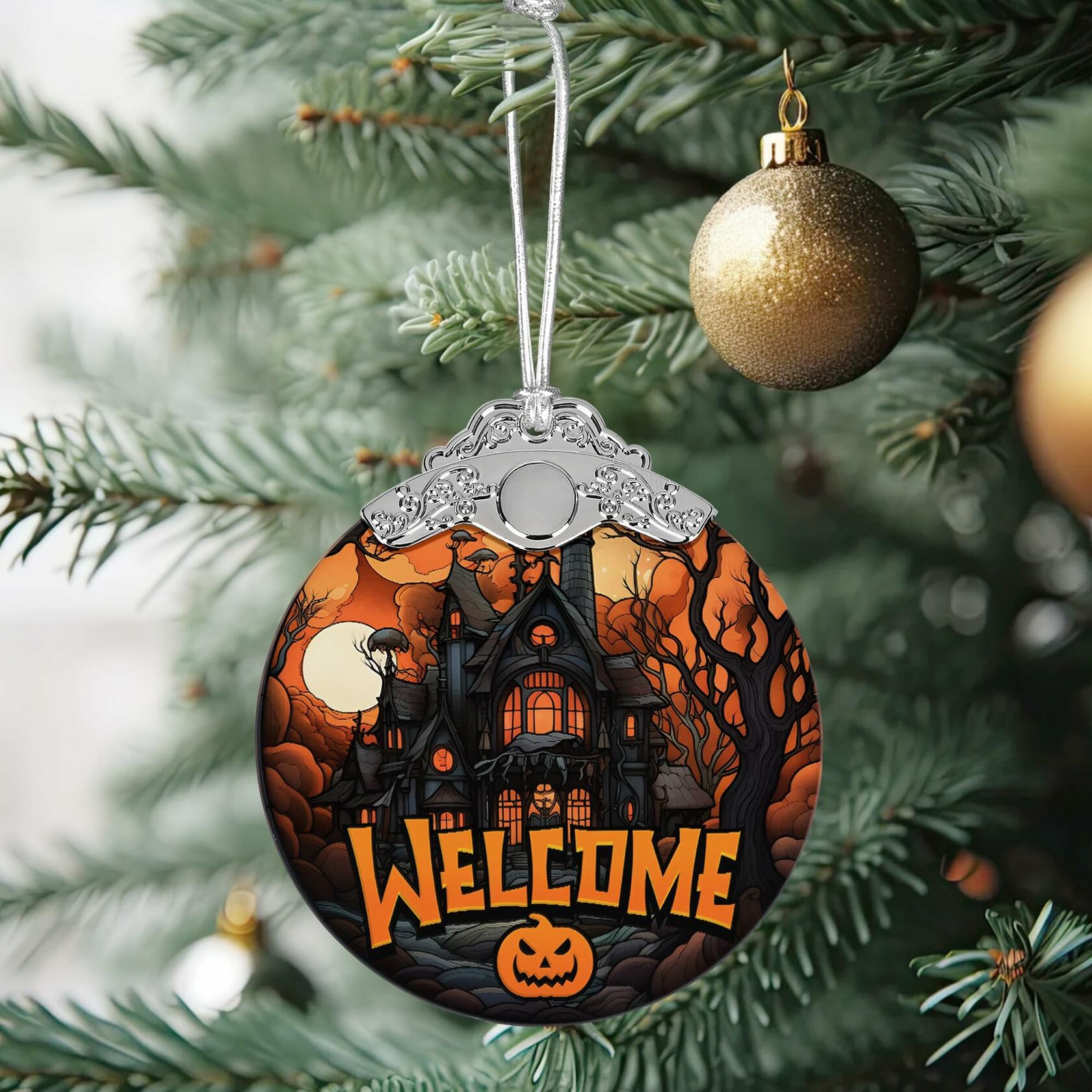 Welcome to The Haunted House Stained Glass Christmas Ornament Holiday Decor