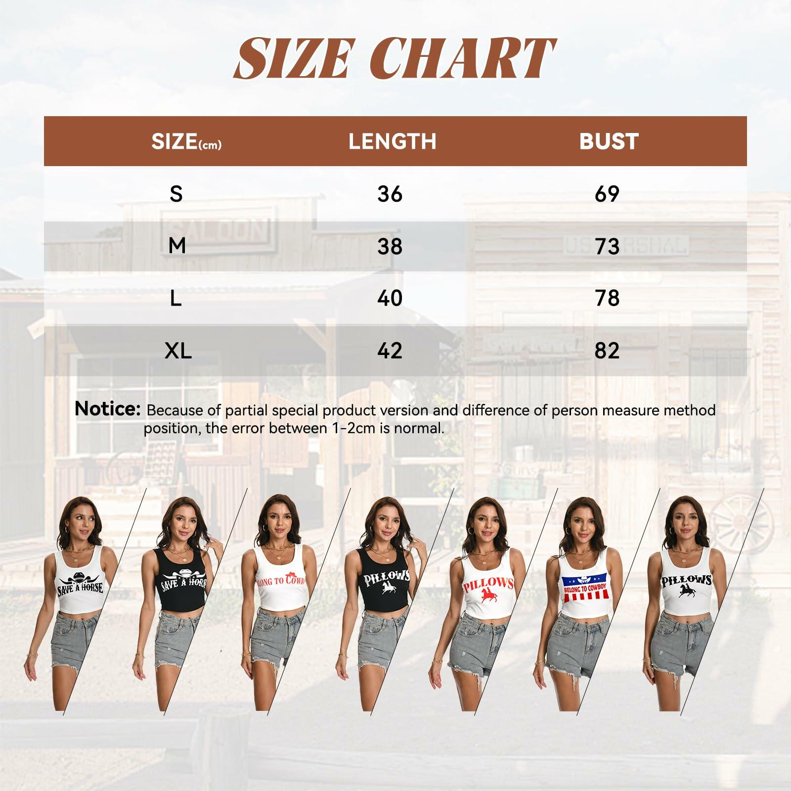 WELLATENT Cowboy Tank Shirt Western Cowgirl Crop Top White Size S