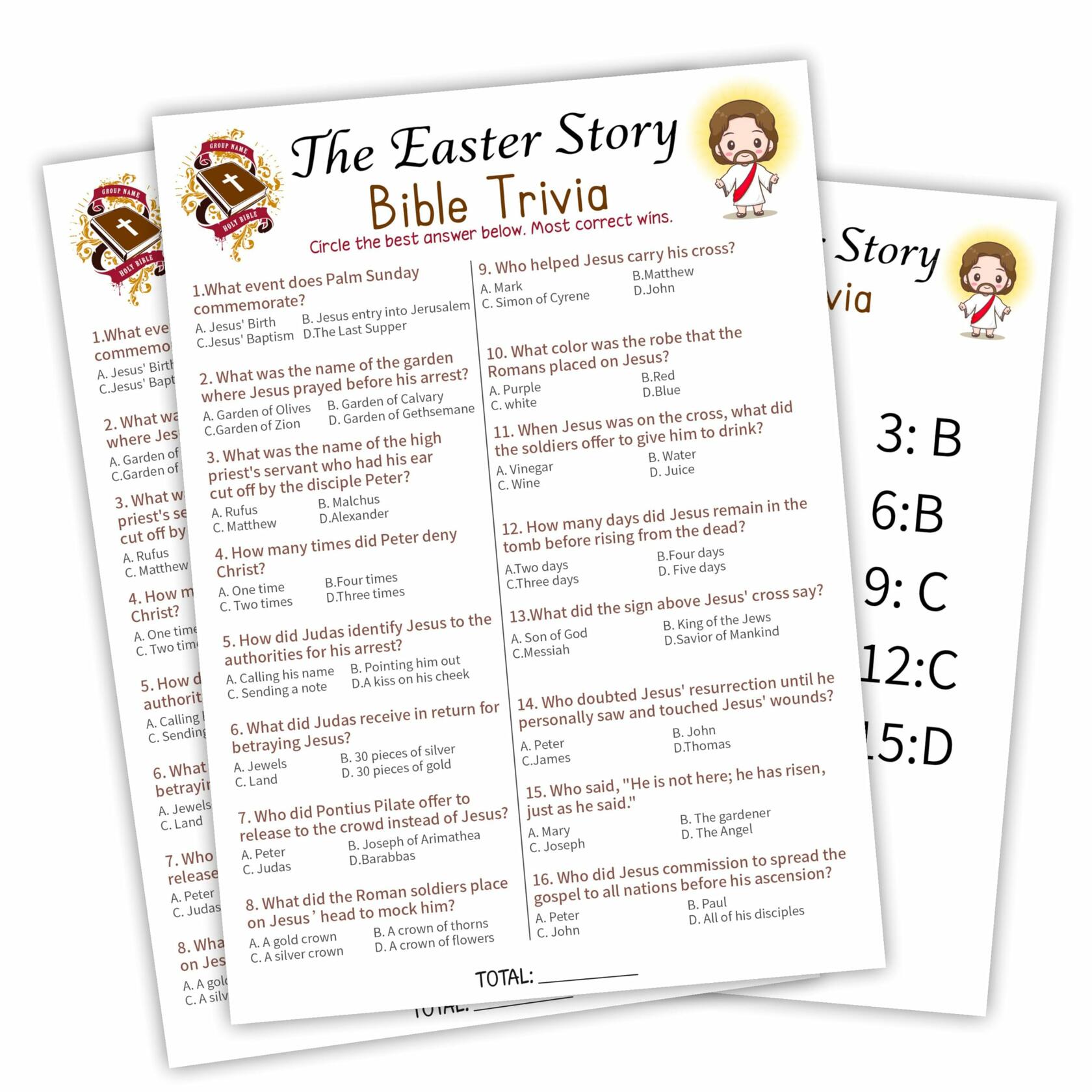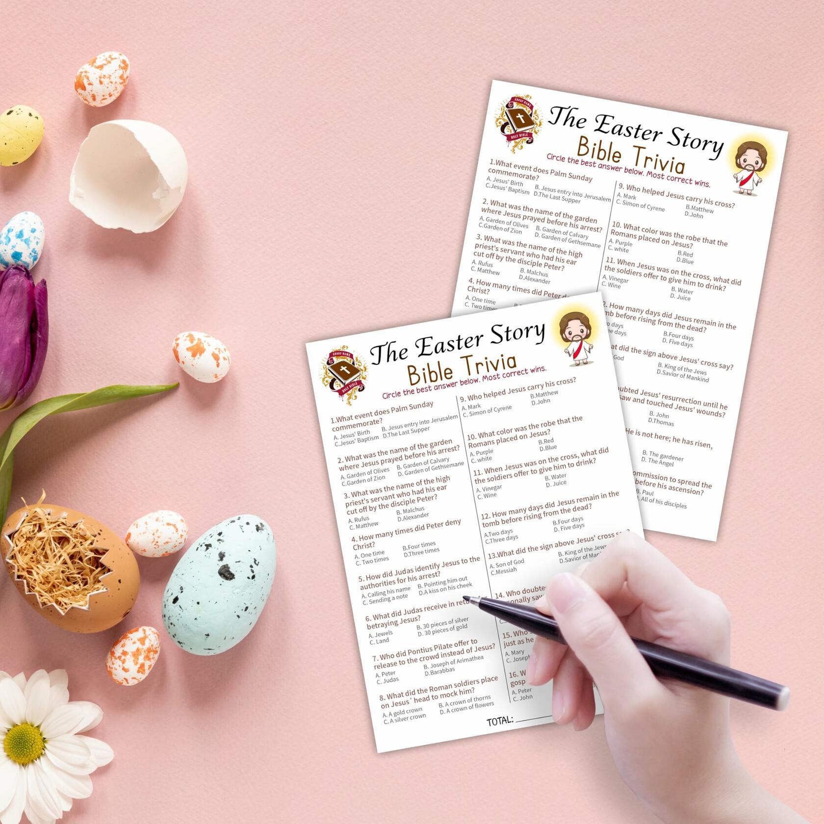 Size: Our Bible Game cards are measured 5 x 7 inches and answer card is measured 4 x 6 inches. Quantity: Each package included 20 game cards & 1 answer card,sufficient to meet your needs for party. Material: Made of heavy gram coated paper, which is professionally printed , our smooth heavyweight card stock is thick and easy to write on . Application: The game design is very interesting and adds to the festive atmosphere, Suitable for school Sunday activities, religious family Easter gatherings, church Easter activities. I am sure you will be satisfied with our unique design and wish you a good game time!
