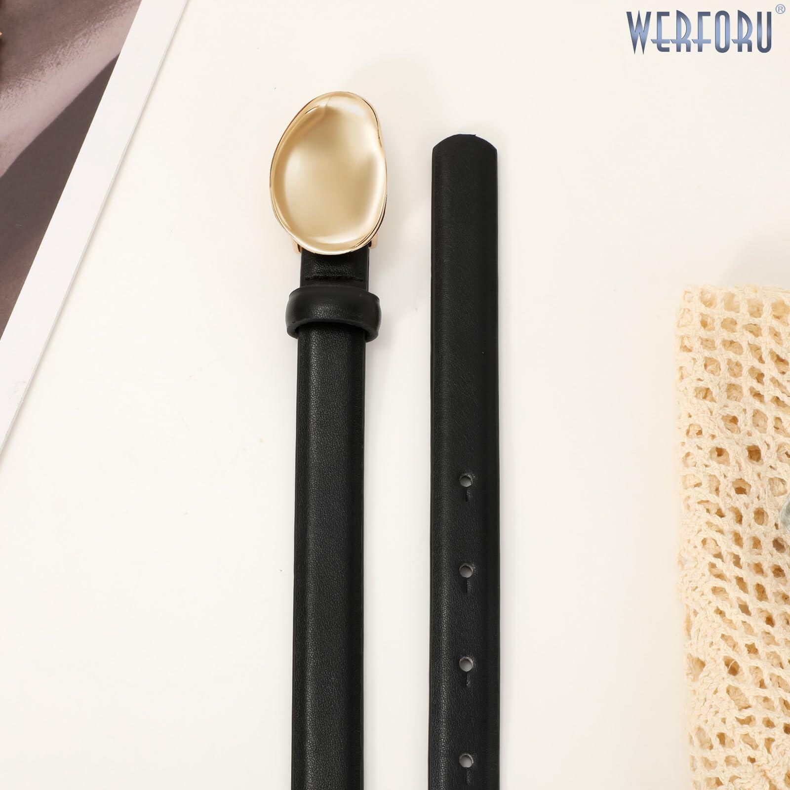 WERFORU Women Skinny Faux Leather Belt Gold Buckle 0.7" Width Size 36-42"