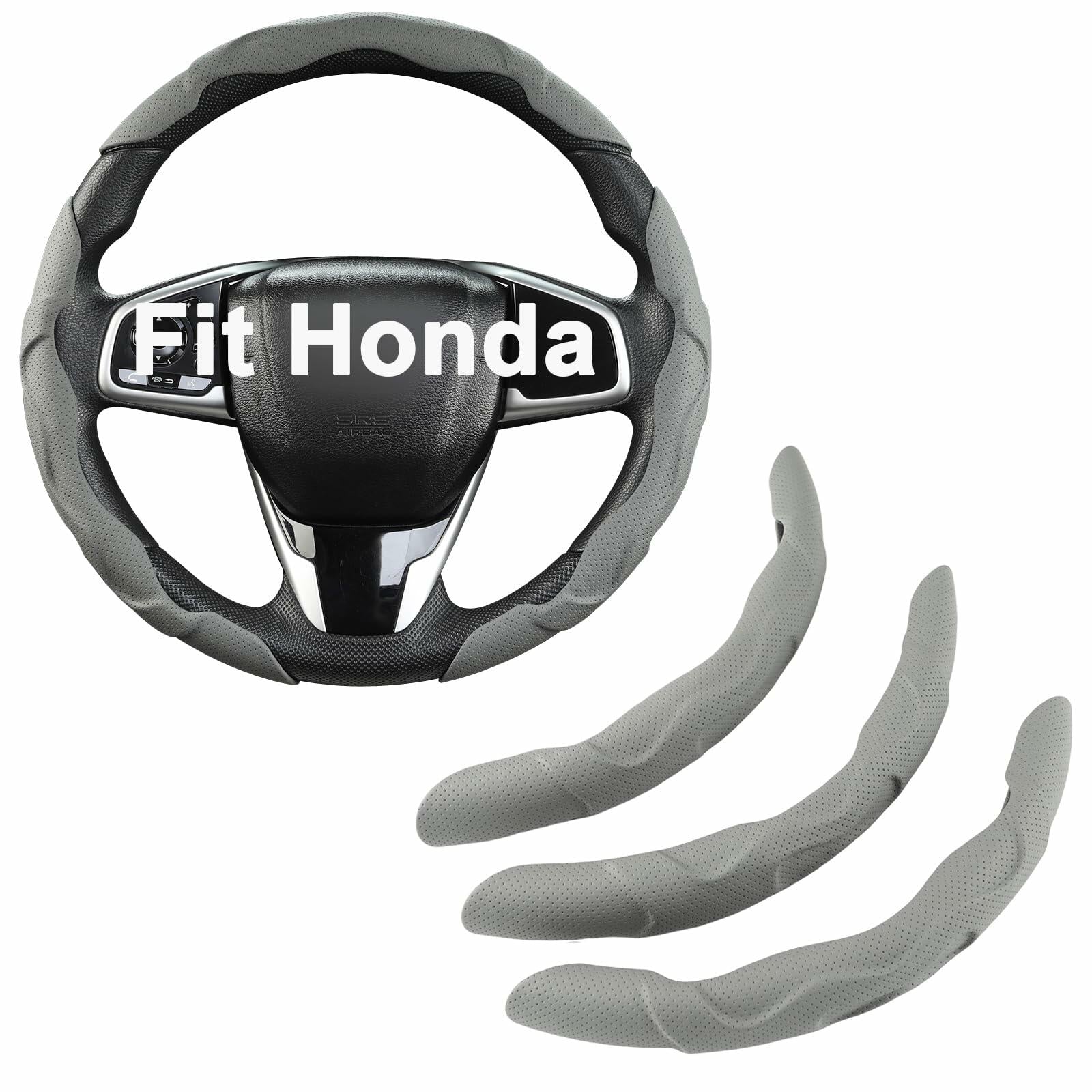West Llama Car Steering Wheel Cover Set 3pcs Leather 3D Gray for Honda