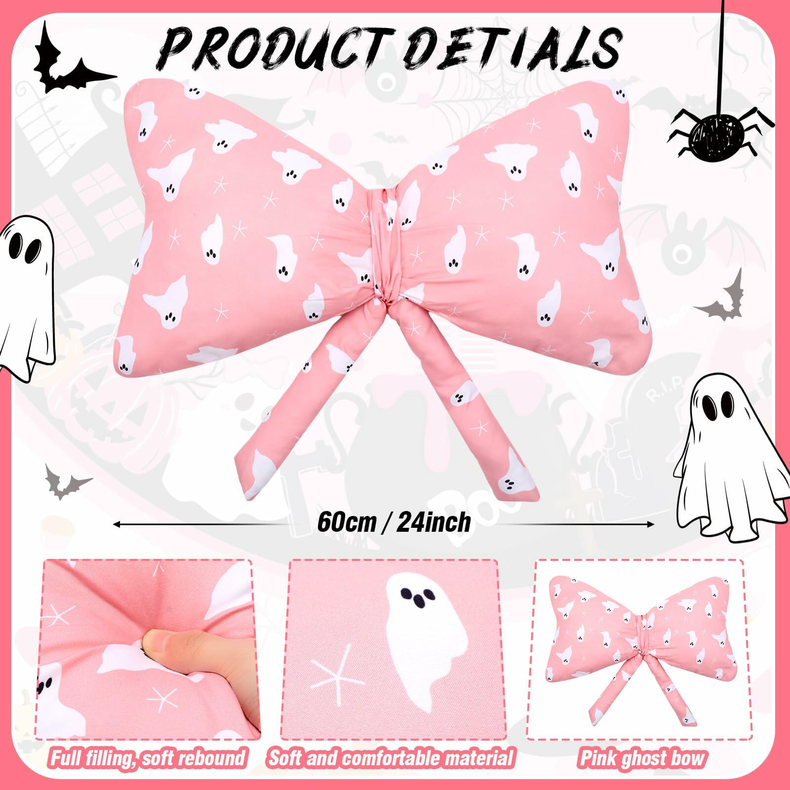 - Halloween Style: the Halloween ghost pink bow pillow introduces a whimsical twist to traditional Halloween decor, with its ghost design and charming pink bow shape, this coquette pink ghost soft pillow adds a quirky yet elegant touch to any room, delighting those who seek to blend the ominous with the delightful during the Halloween season
