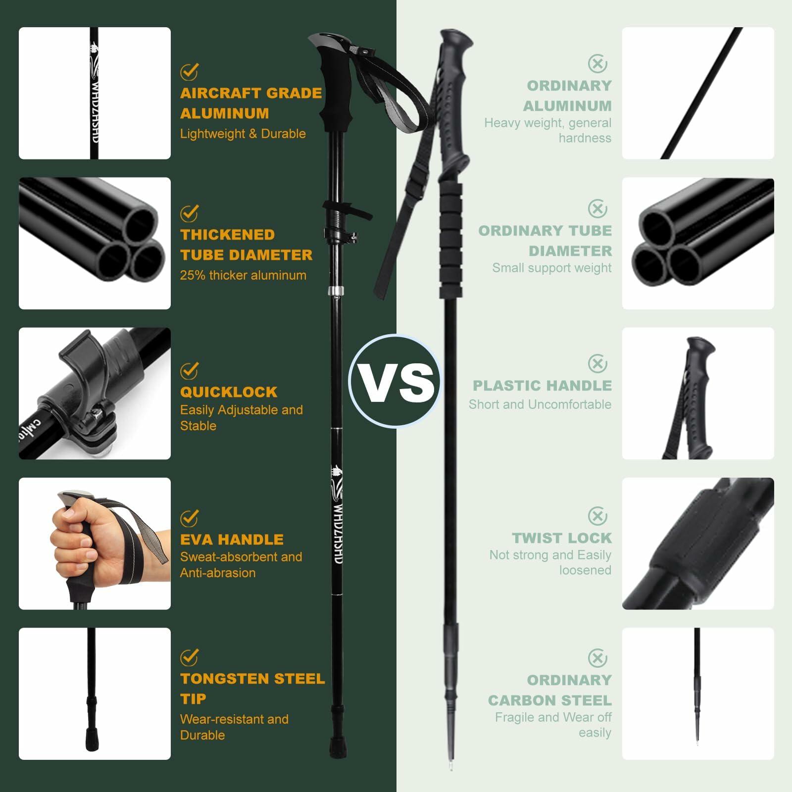 - Aircraft-Grade 6061 Aluminum Hiking Sticks:Featherlight yet sturdy (10oz/pole), deformation-resistant, built for rugged terrain endurance