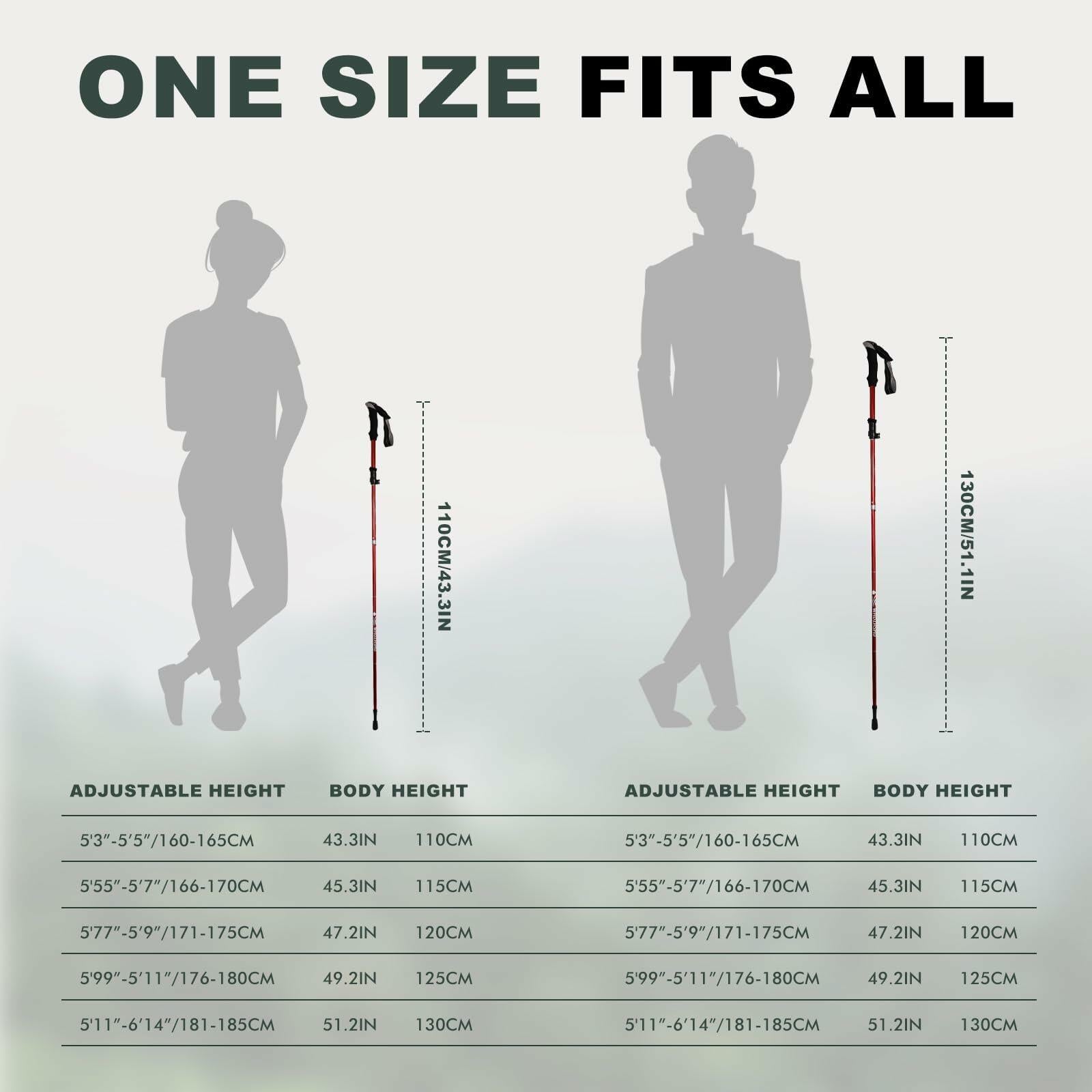 • Aircraft-Grade 6061 Aluminum Hiking Sticks‌:Featherlight yet sturdy (10oz/pole), deformation-resistant, built for rugged terrain endurance