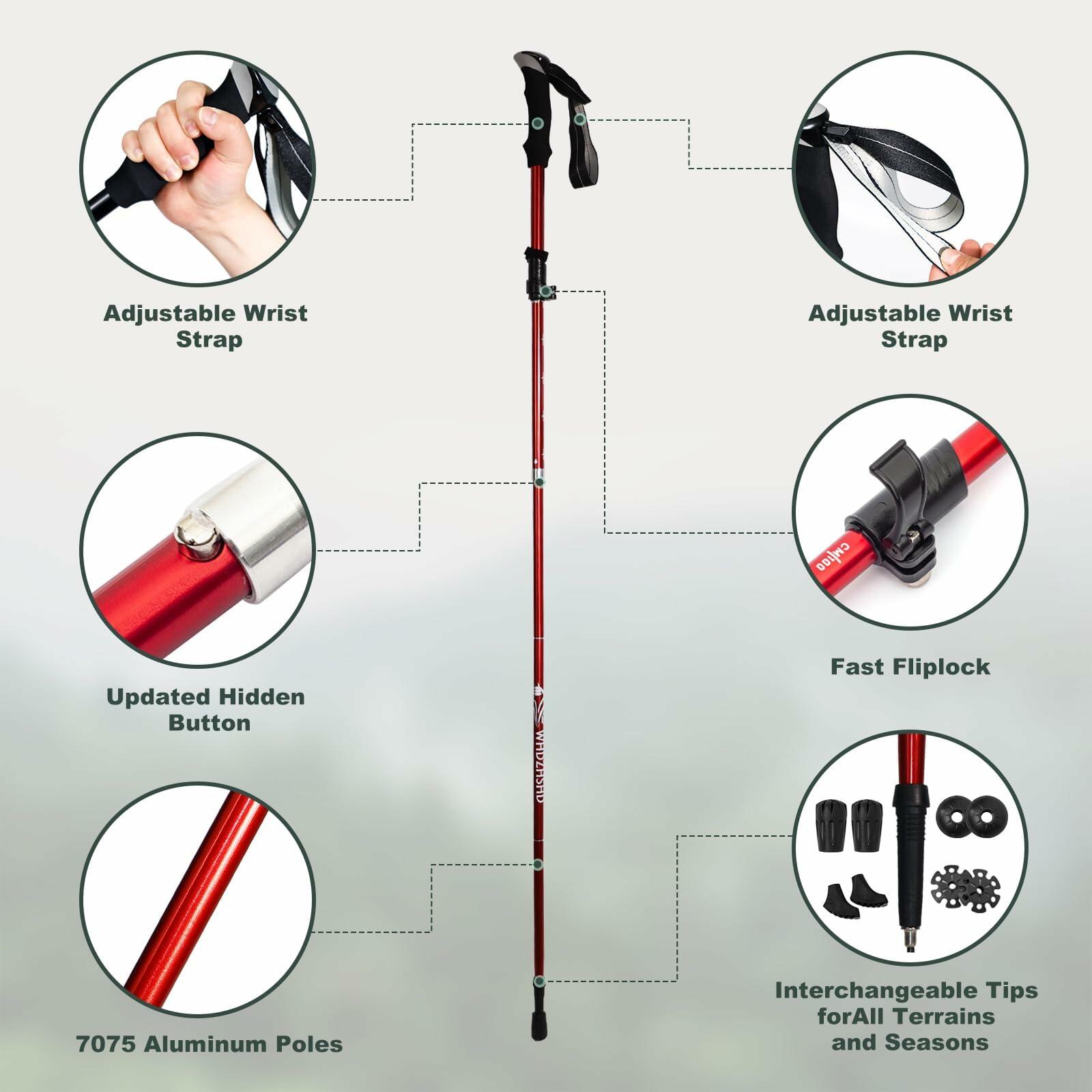 WHDZHSHD Collapsible Trekking Poles Aluminum Adjustable Locks 51in Red 2pc