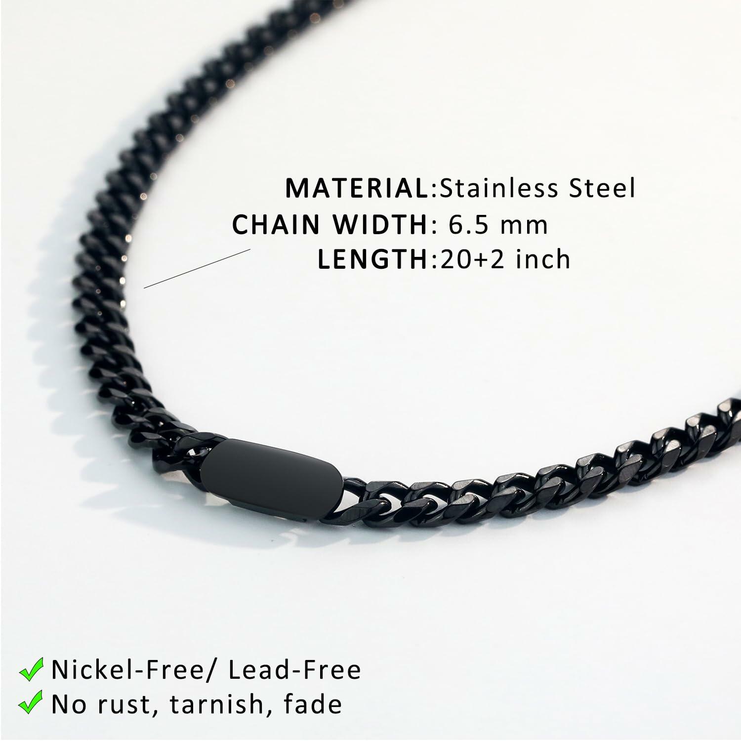 WINFY Cuban Link Necklace Men 6.5mm 18+2in Stainless Steel Black