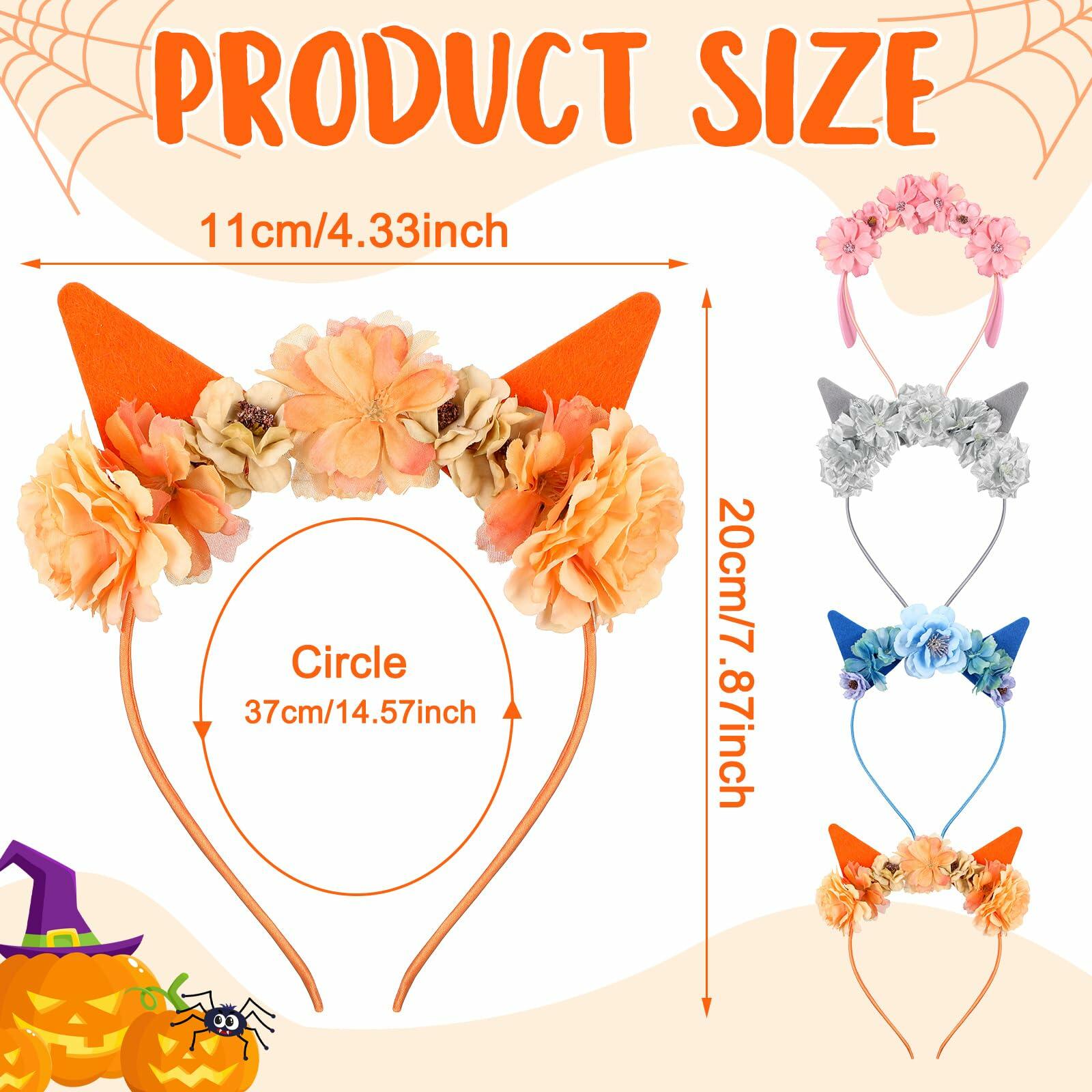 - Dog Ears Design: each funny hairband features a cartoon style dog ear shape with playful curves and soft structure; Delicate floral accents add a small touch of decorative flair while highlighting the striking ear shape and vibrant Halloween colors, making it easy to create the look