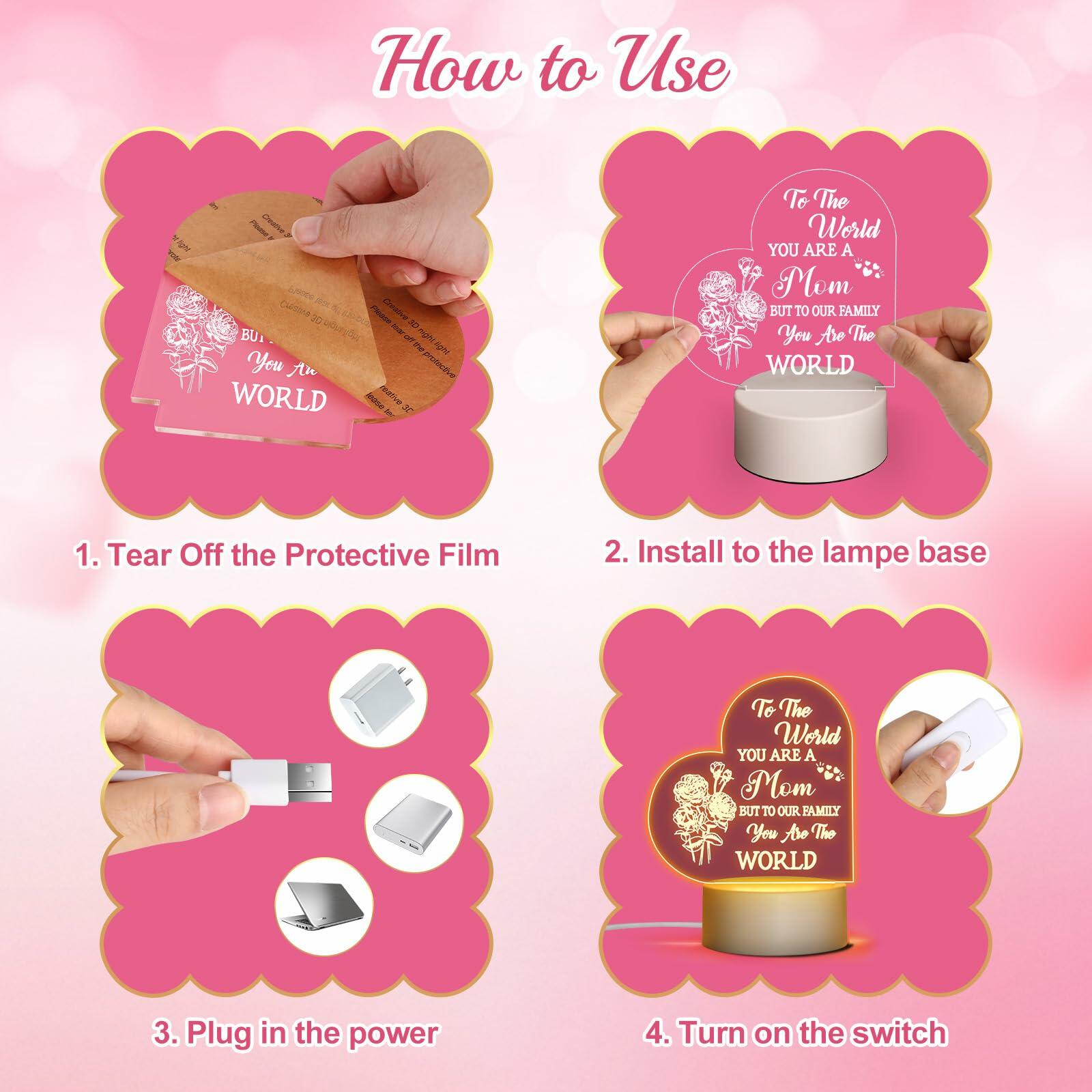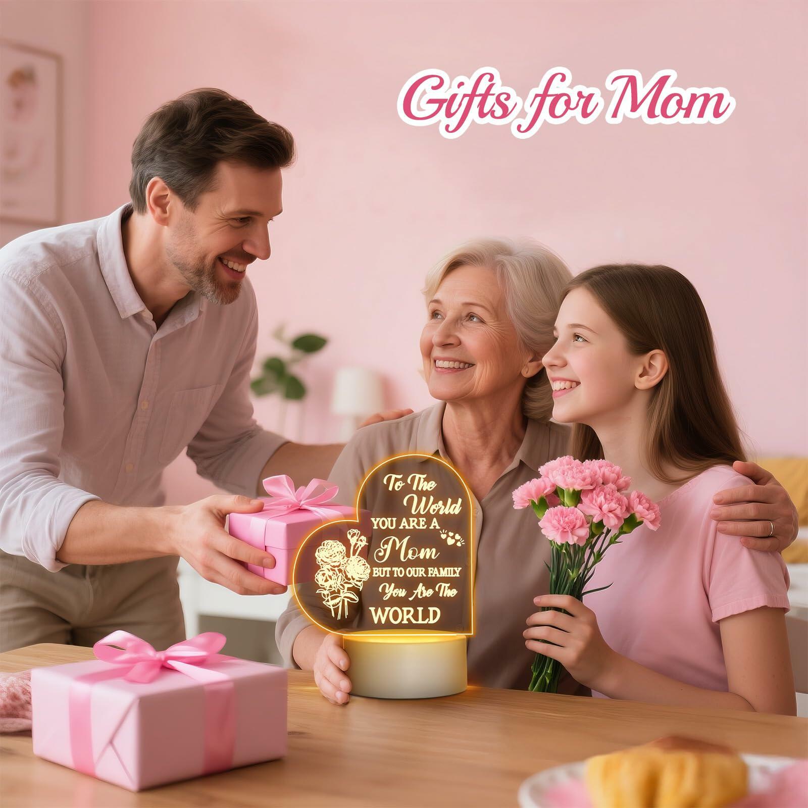 - Mothers Day Gifts For Mom: ”To the world, you are a mom. But to our family, you are the world”. Every time mom sees this night light engraved with heart-warming words, she will feel strong love from her children. mom is a great woman that we are most thankful