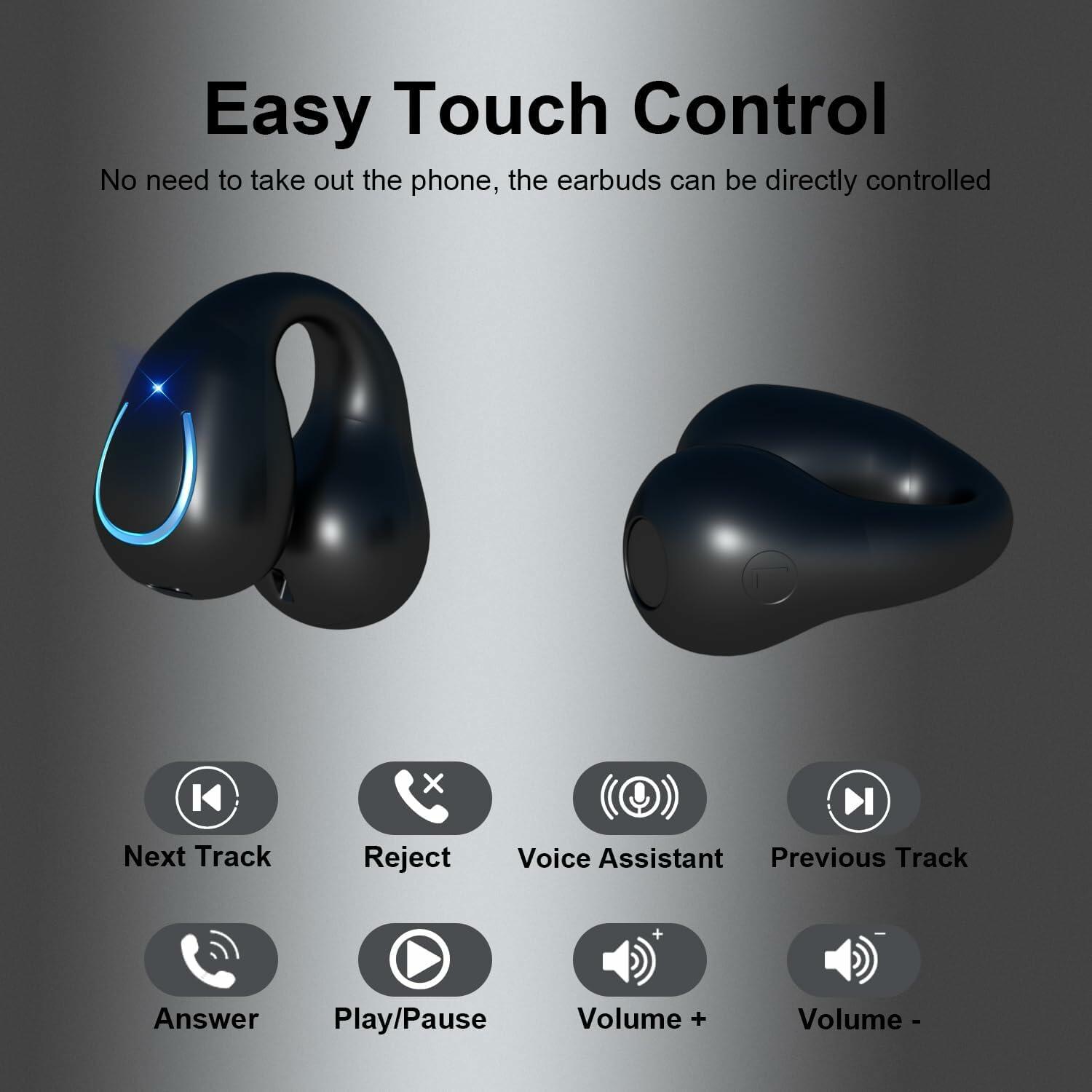 Wireless Bluetooth Open Ear Bone Conduction Headphones, 60 Hrs Battery, LED Display, Ear Hooks Ear Buds,Waterproof,Clip On Earbuds Charging Case Sports Earphones for Running, Walking, Workout,Office