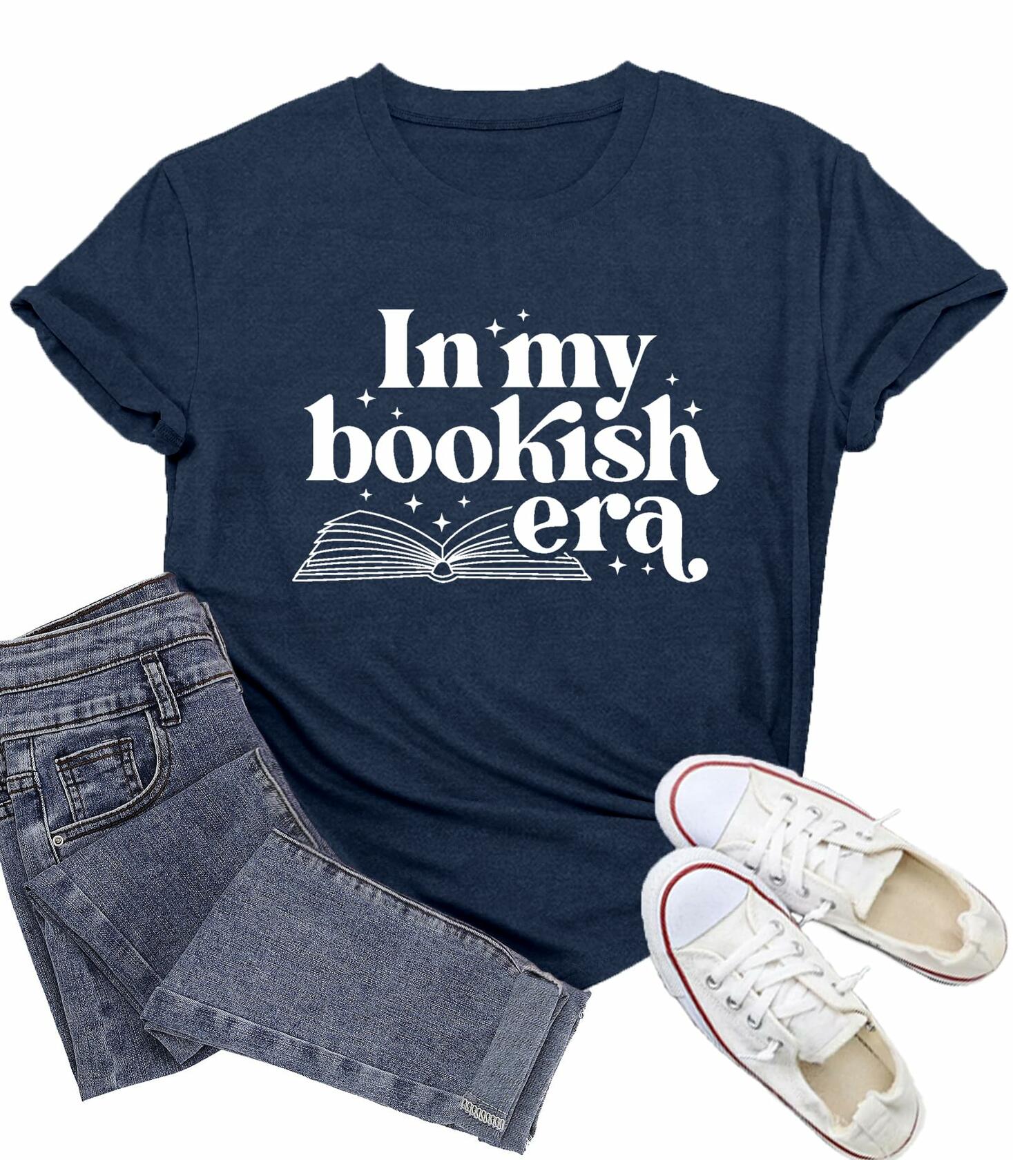 - Reader theme design: This reading motivation t-shirts features opened books and is paired with the phrase "In my bookish era”. Salute to the books that shape the human soul. Transforming passion for reading into wearable art