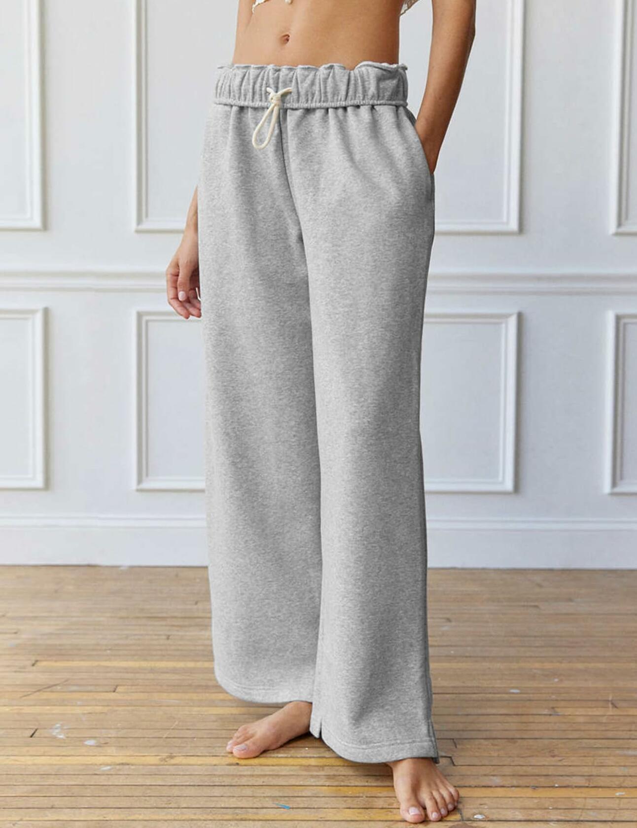 Women's Casual Baggy Fleece Sweatpants Drawstring Loose Joggers Lightgrey Size L