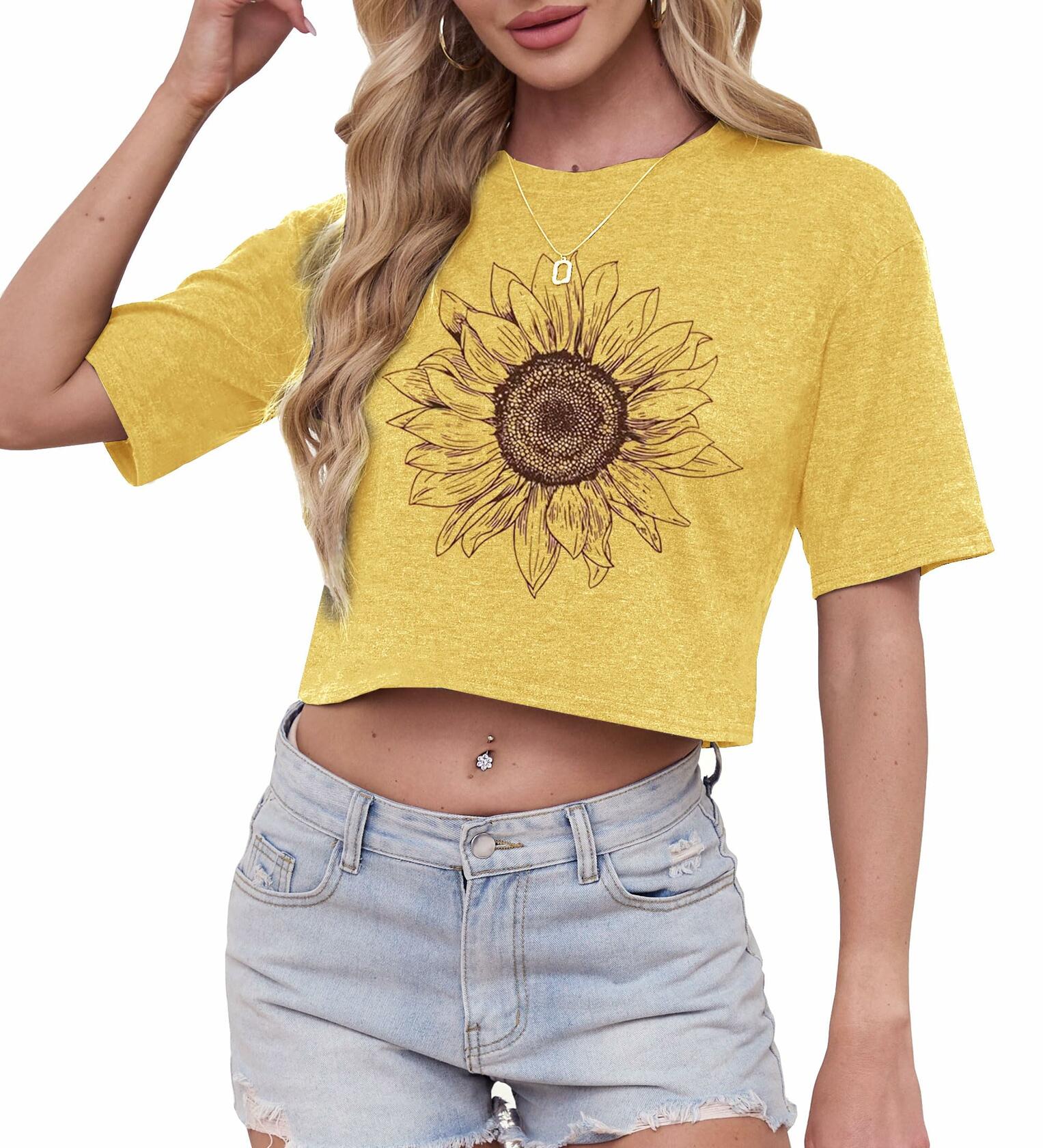 - ※Feature: Crop Tops T-Shirt, Casual Gift Tops Shirts, Floral Graphic Tees, Loose Fit Casual Fashion Style.