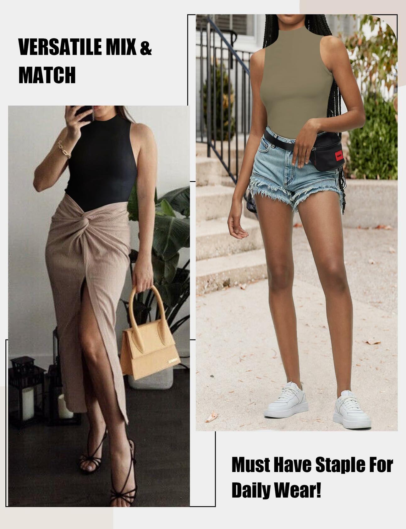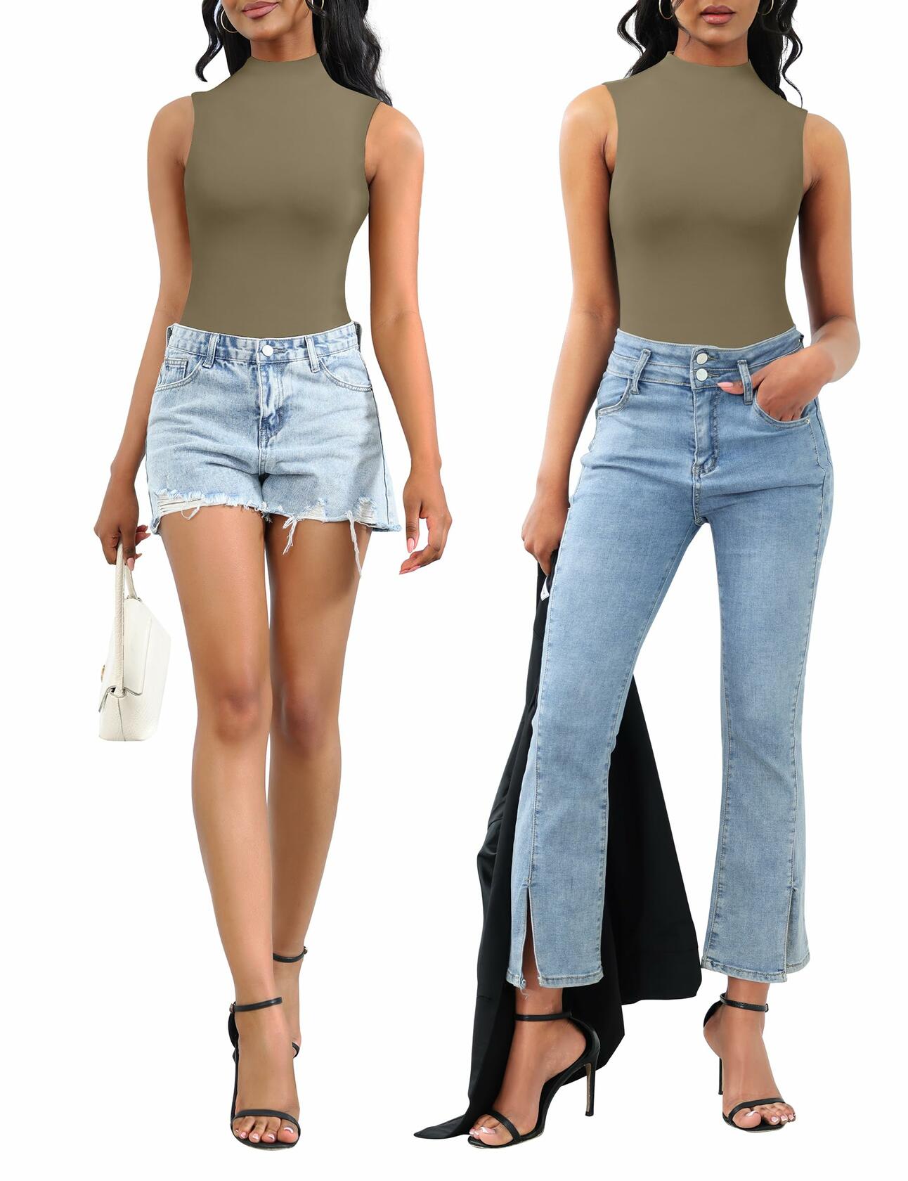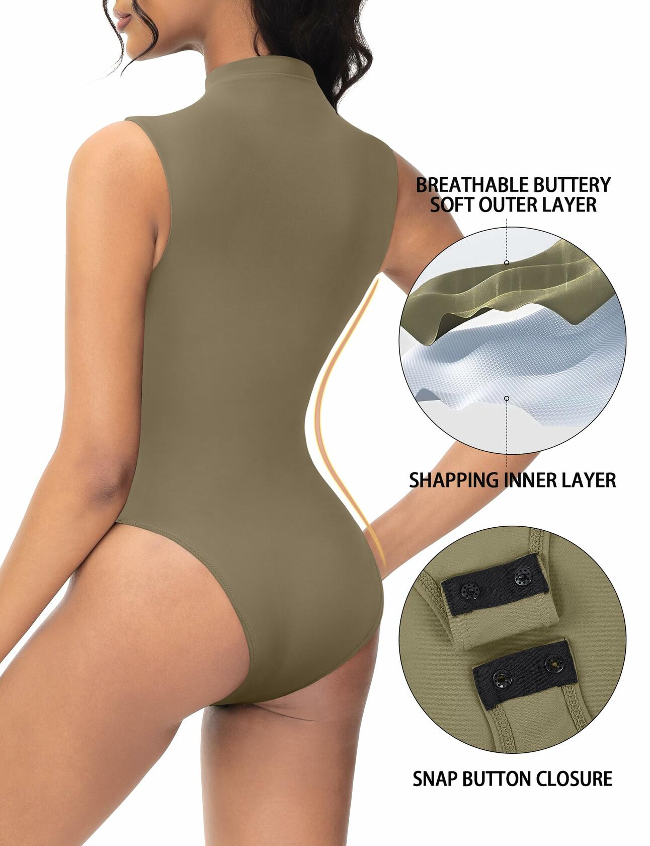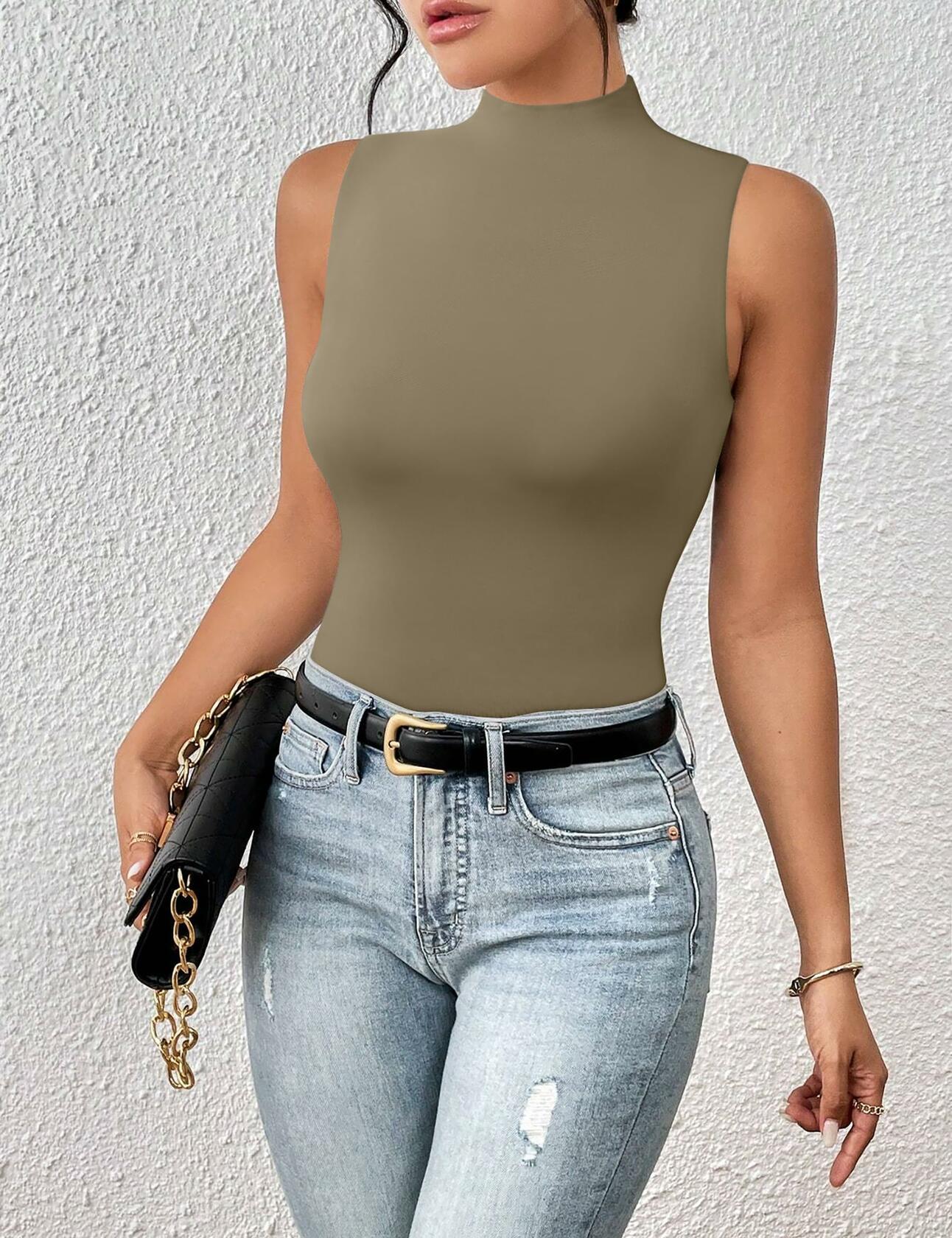 Women's Sleeveless Mock Turtle Neck Bodysuit Slim Fit Racerback Size M