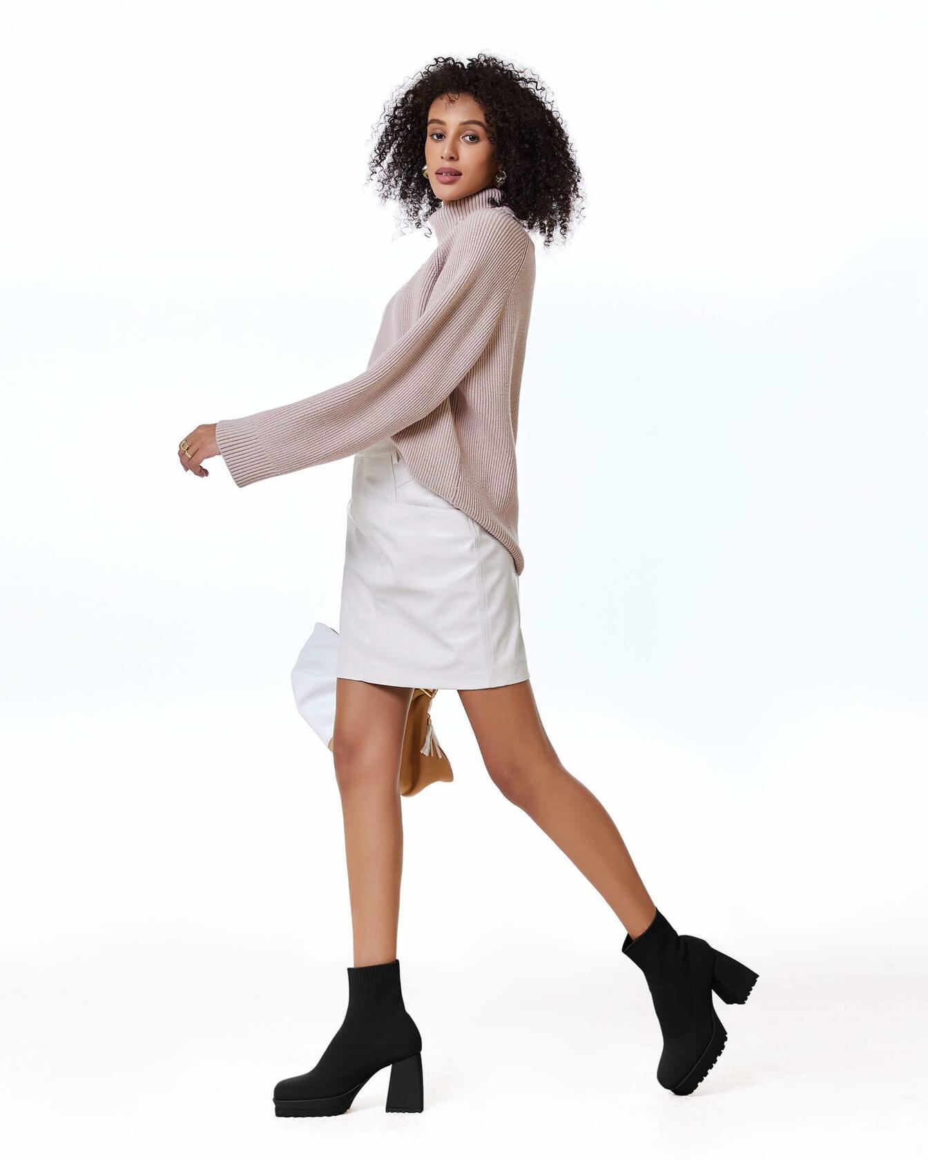 - Features: Knitted, square toe, thick heel, pull-on, fashion ankle bootie with heeled for womens.