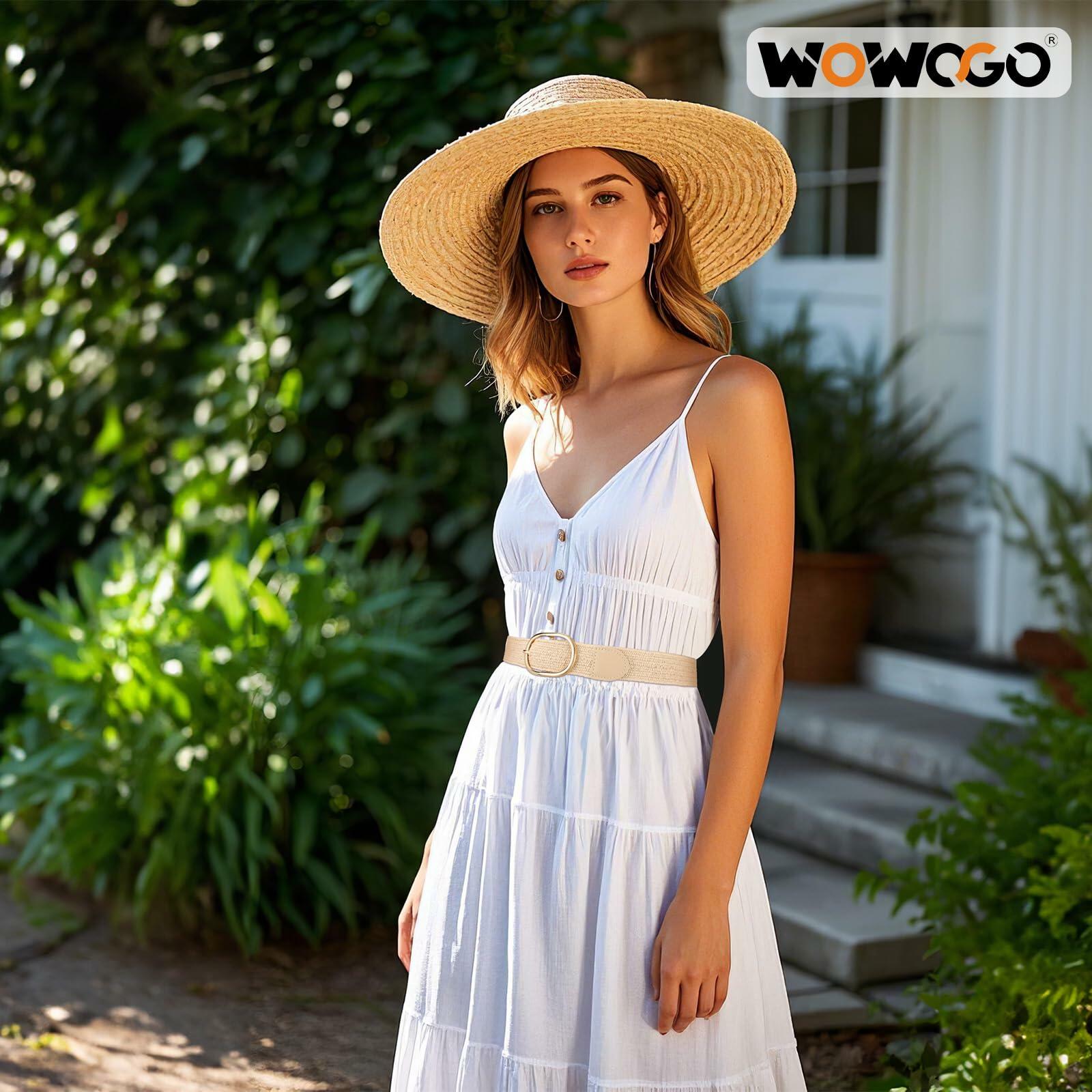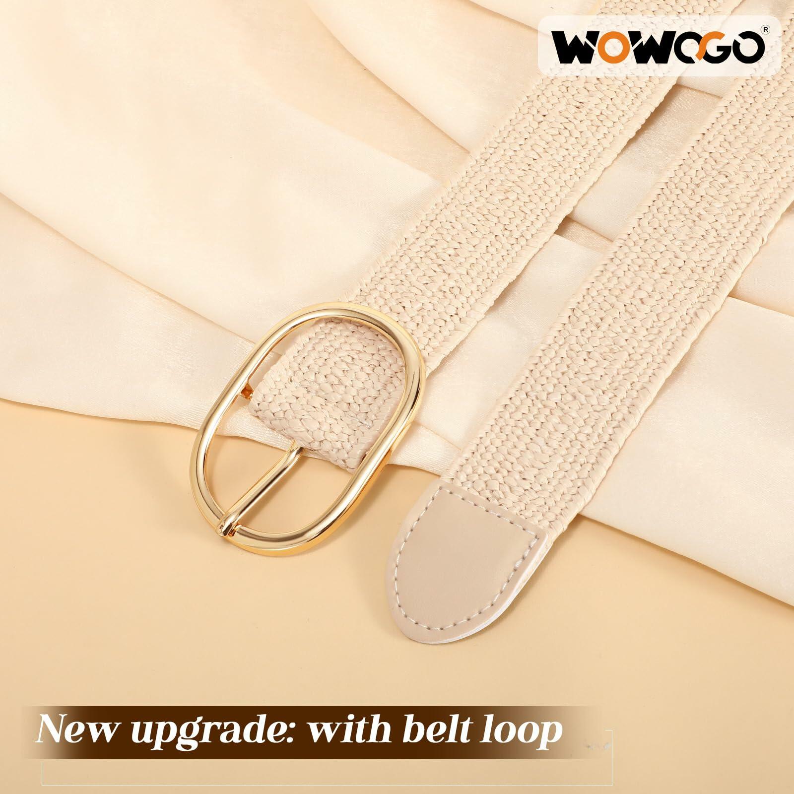 WOWOGO Women Straw Woven Rattan Stretch Belt Boho Beige Waist up to 33" Size
