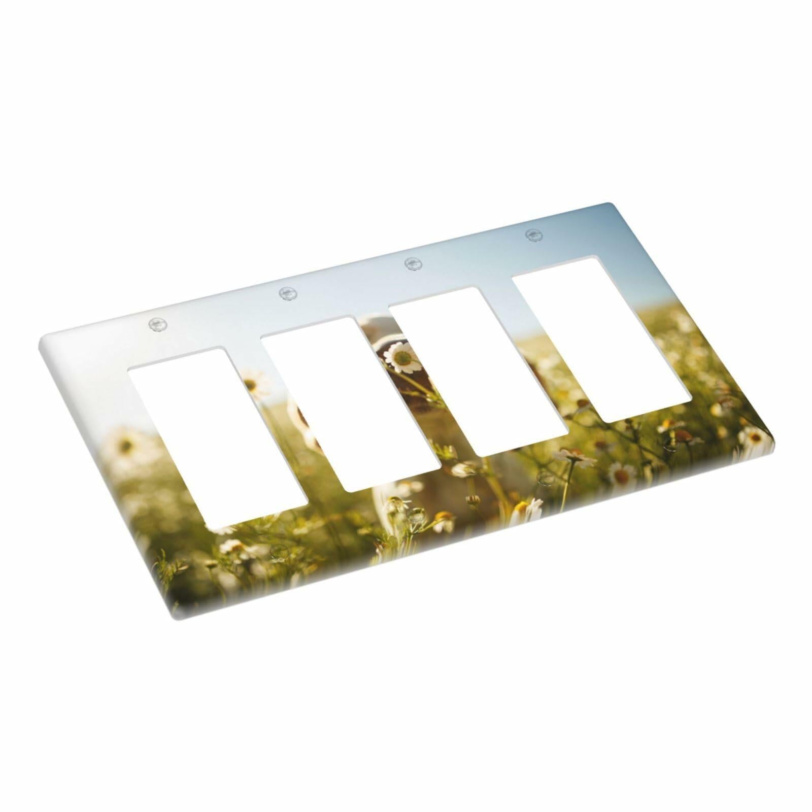 Wpshijia 4 Gang Light Switch Cover Wild Daisy Puppy Outdoor Wall Plate