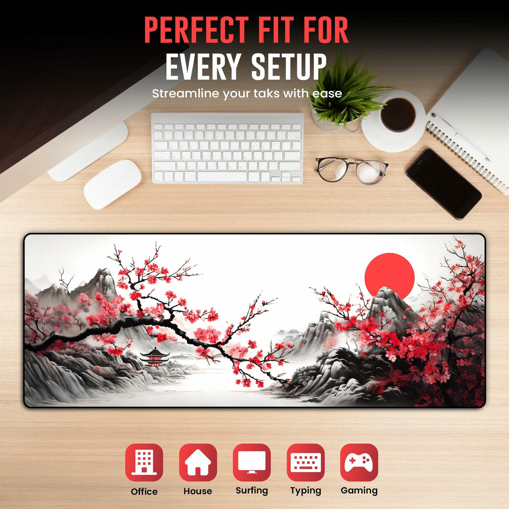 - 【Extra Large Size】Measuring 800×300×3mm (31.5x11.8 inches), this XL cherry blossom desk mat offers generous workspace. It easily accommodates your keyboard, mouse and other desk accessories, making it a perfect large mouse pad for any desk.