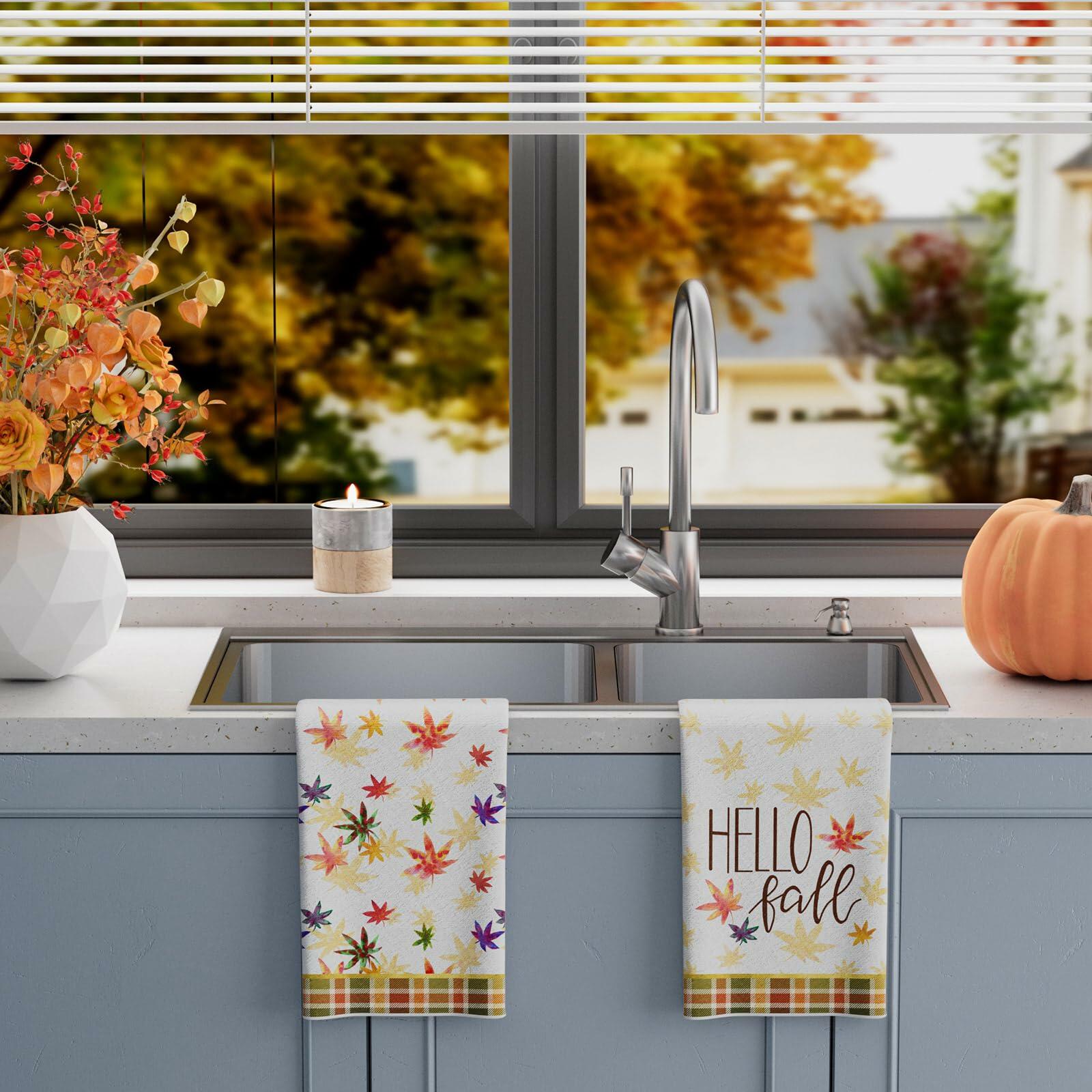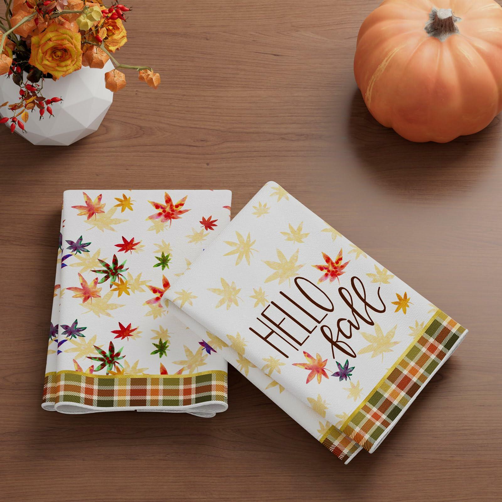 XCHI Hello Fall Watercolor Maple Leaves Plaid Dish Towels 18x26 Set of 2