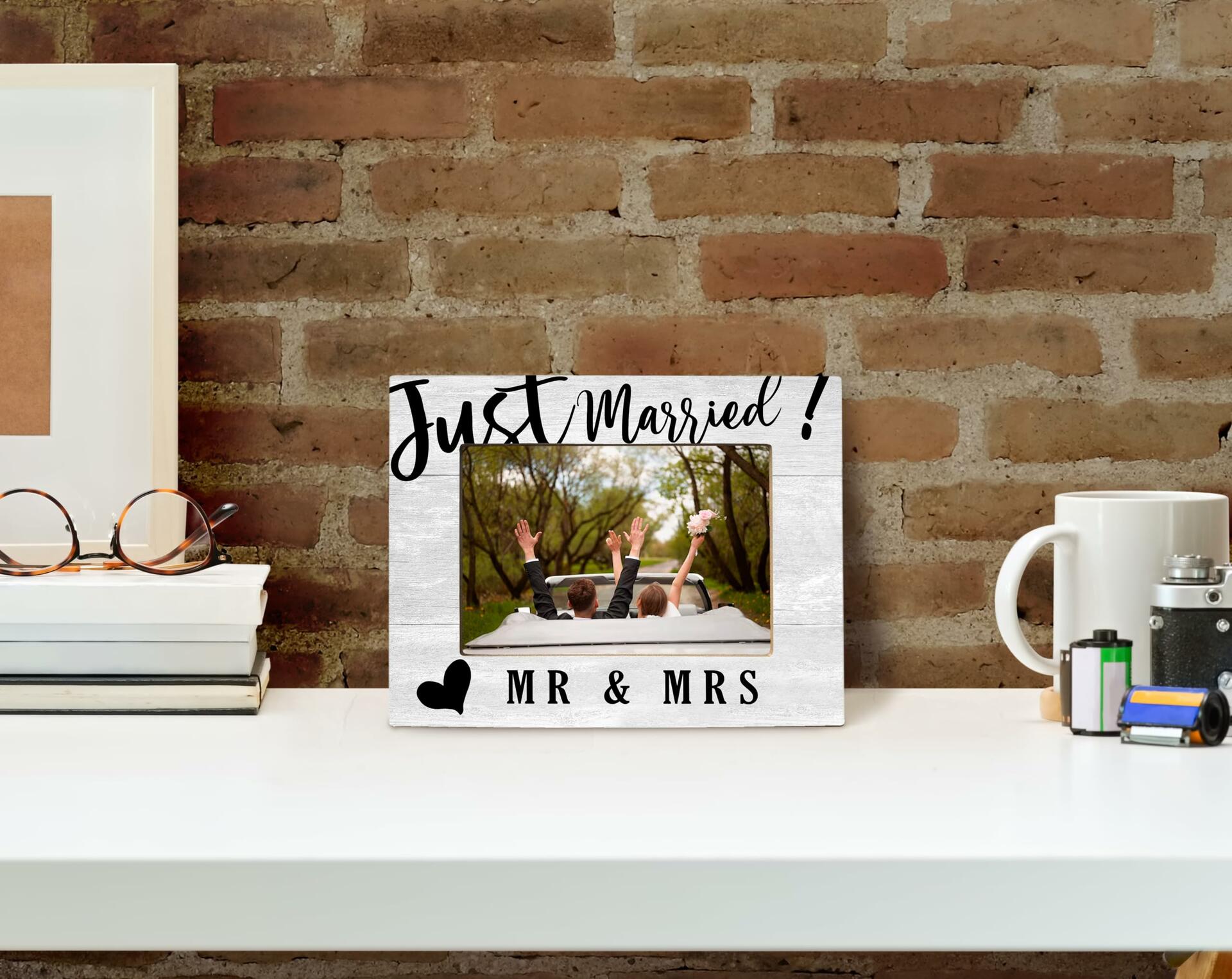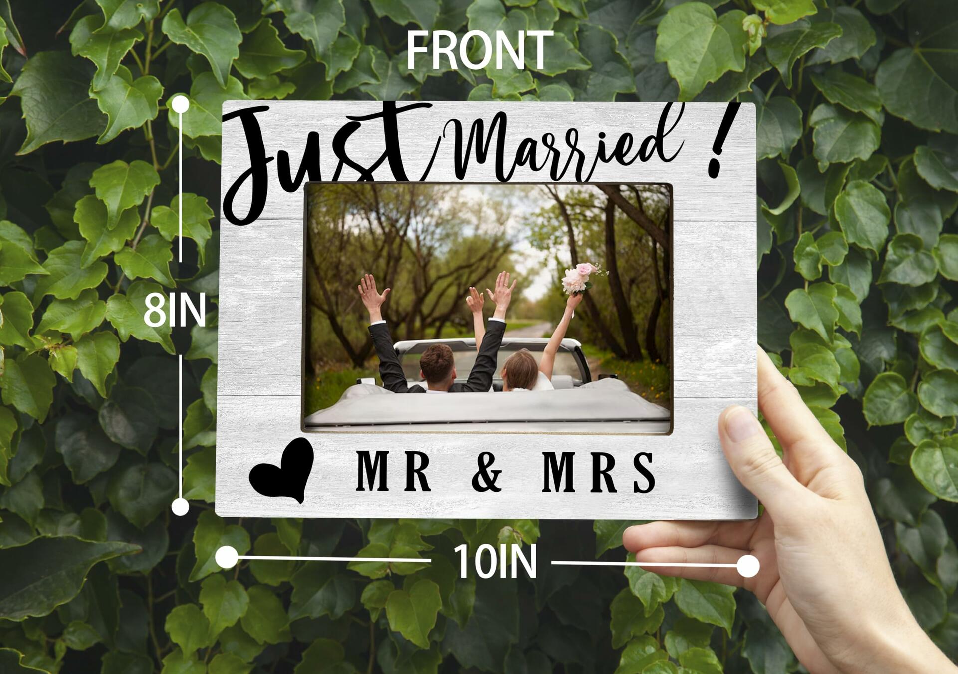 XDFVL Just Married Wedding Photo Frame Black 8x10 Horizontal
