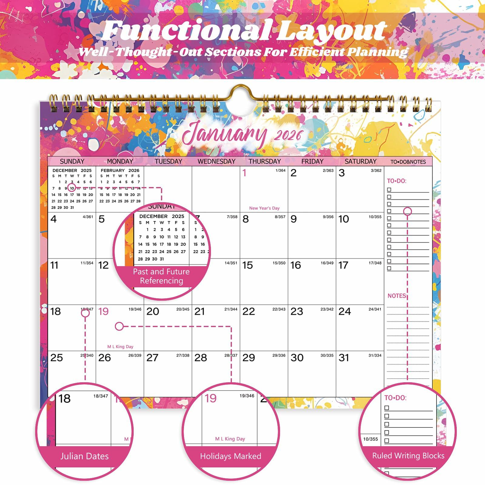- Hand Drawn Original Design, In addition to being quality planning tool, this wall calendar 2025 is also beautiful addition to your wall, different color combinations add a relaxed atmosphere, and it's also good gift for new year 2026, wedding and christmas and freshness to your office, home or classroom.