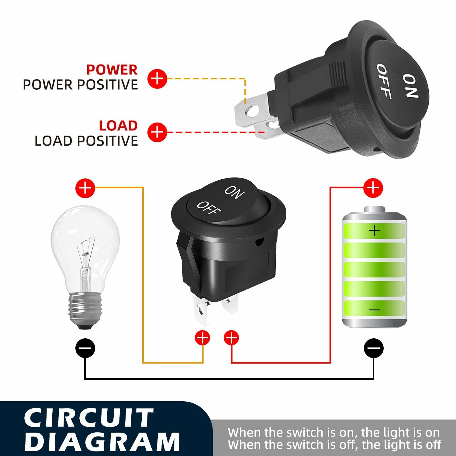 The switch has passed our quality inspection, switch life: 50000 times. Specifications: Round rocker switch rating: AC 125V 10A / AC 250V 6A Material: plastic and terminal wire Package Including: Size and Generous Quantity: 8 x Round on off switch(Diameter 22mm) 4 x black shell(Diameter 35mm) 8 x Red wires(Length20cm) 8 x Black wires(Length20cm)