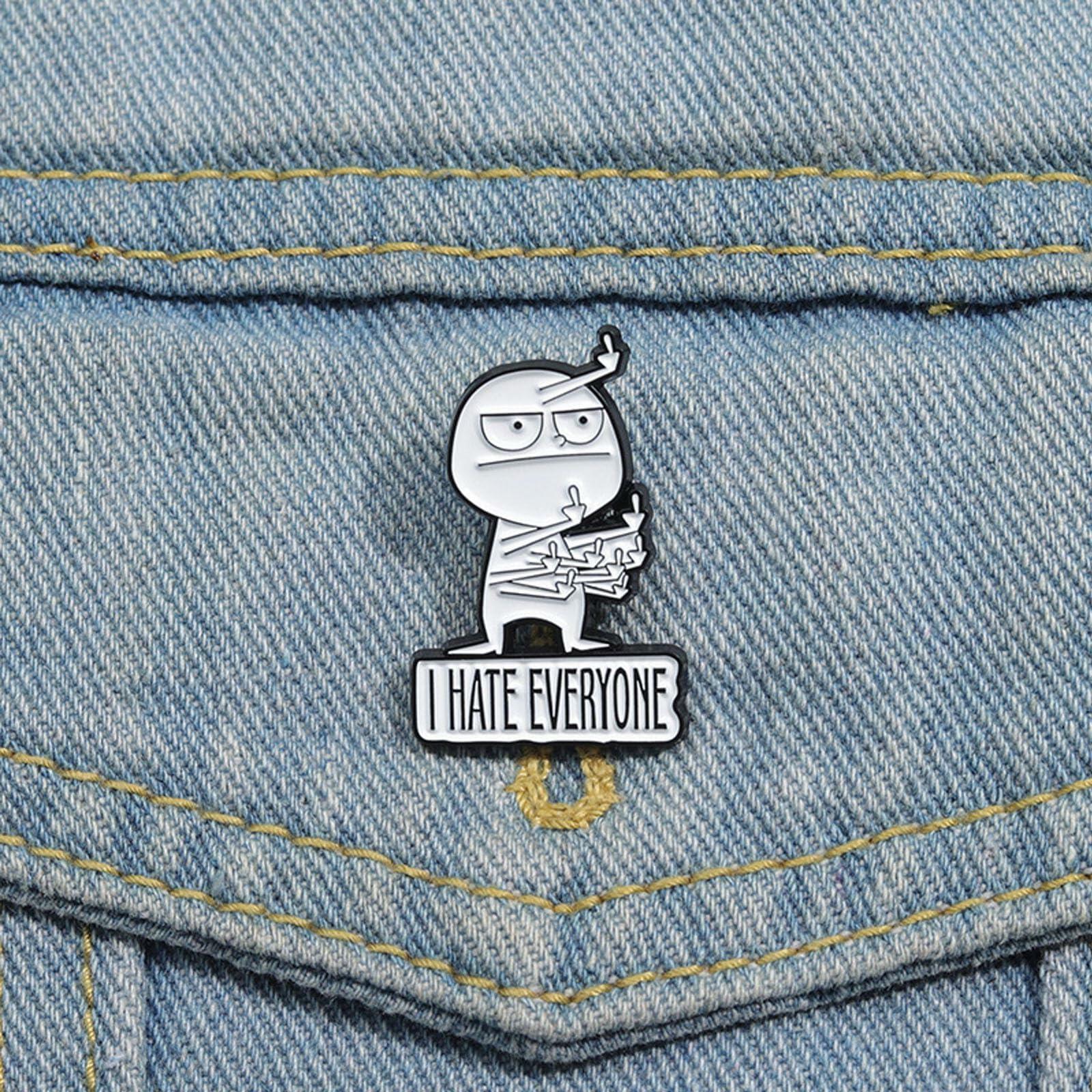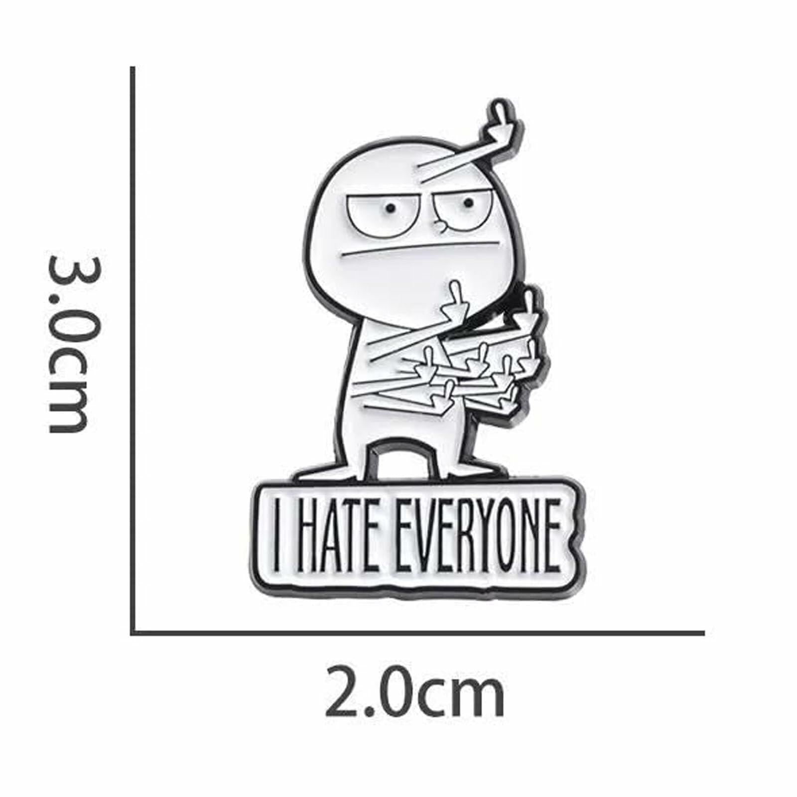 Specification: Handmade Product Name: I Hate Everyone Funny Brooch Material: Zinc Alloy, Enamel Size: 1.1*0.7in Package Includes: 1/2/3/ * I Hate Everyone Funny Brooch Notes: 1. Please allow slight dimens error due to manual measurement. Thank you for your understanding! 2. Due to different monitors and different lighting, the picture may not show the actual color of the item. Thank you for your understanding.