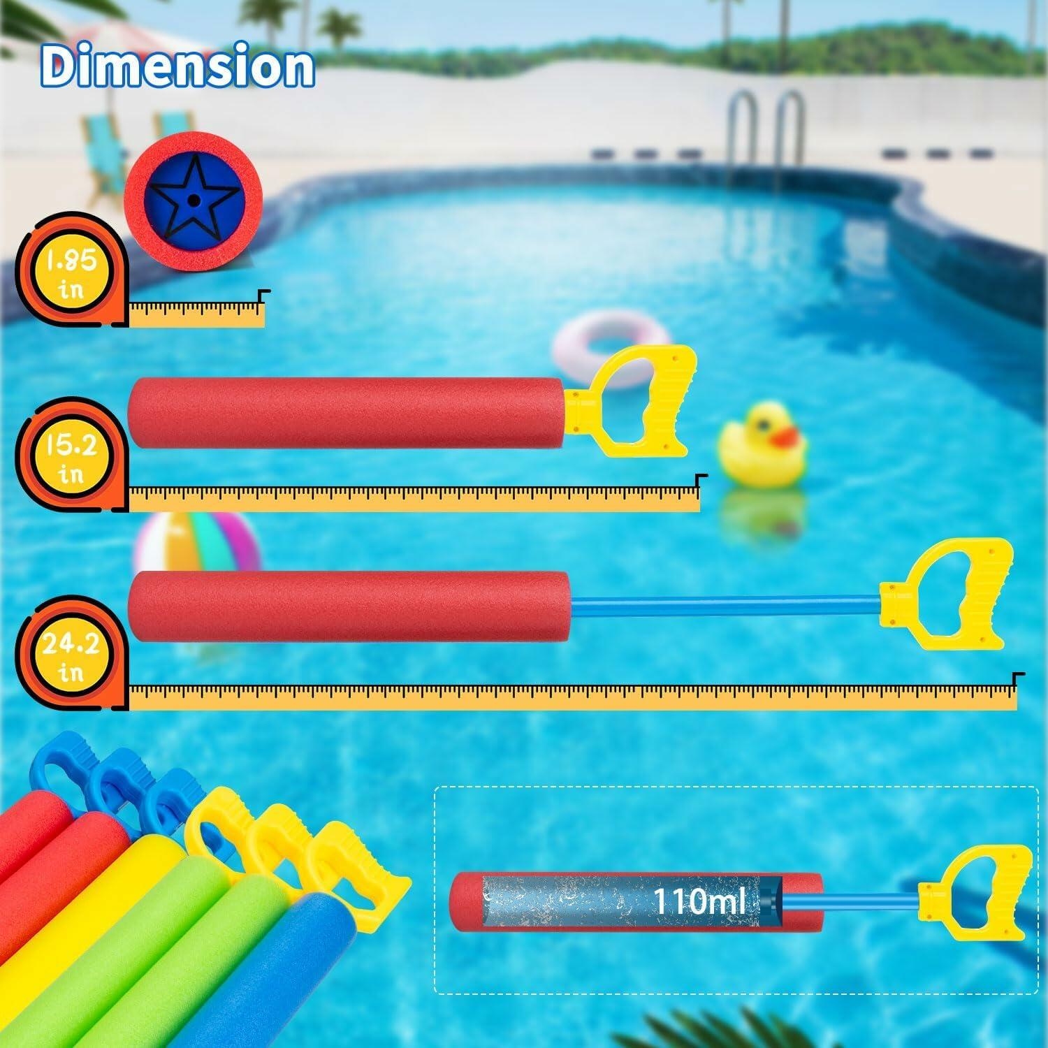- EASY TO USE: Dive into the pool and take your water fights to a whole new level! Our water guns feature a unique pool noodle design with a plastic handle, ensuring they float on water. With the added pearl cotton anti-slip design, you'll enjoy a comfortable grip while splashing around in the pool. It's the ultimate combination of fun and functionality!