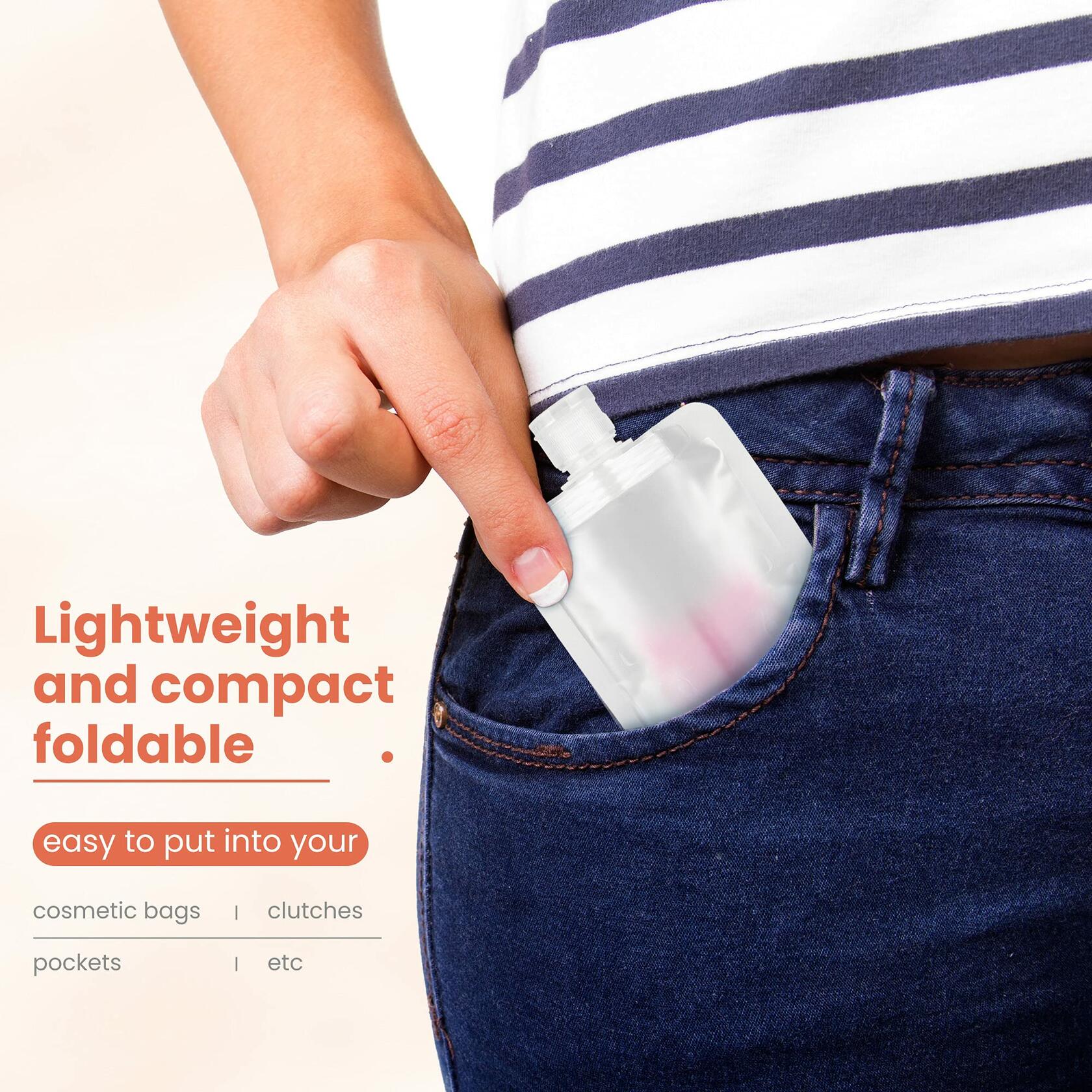 - ✿Space Saver: Bags is lightweight and compact, foldable, when the journey is over, the lotion becomes less, and the volume of the bag is thin like a piece of paper, not occupy any space.