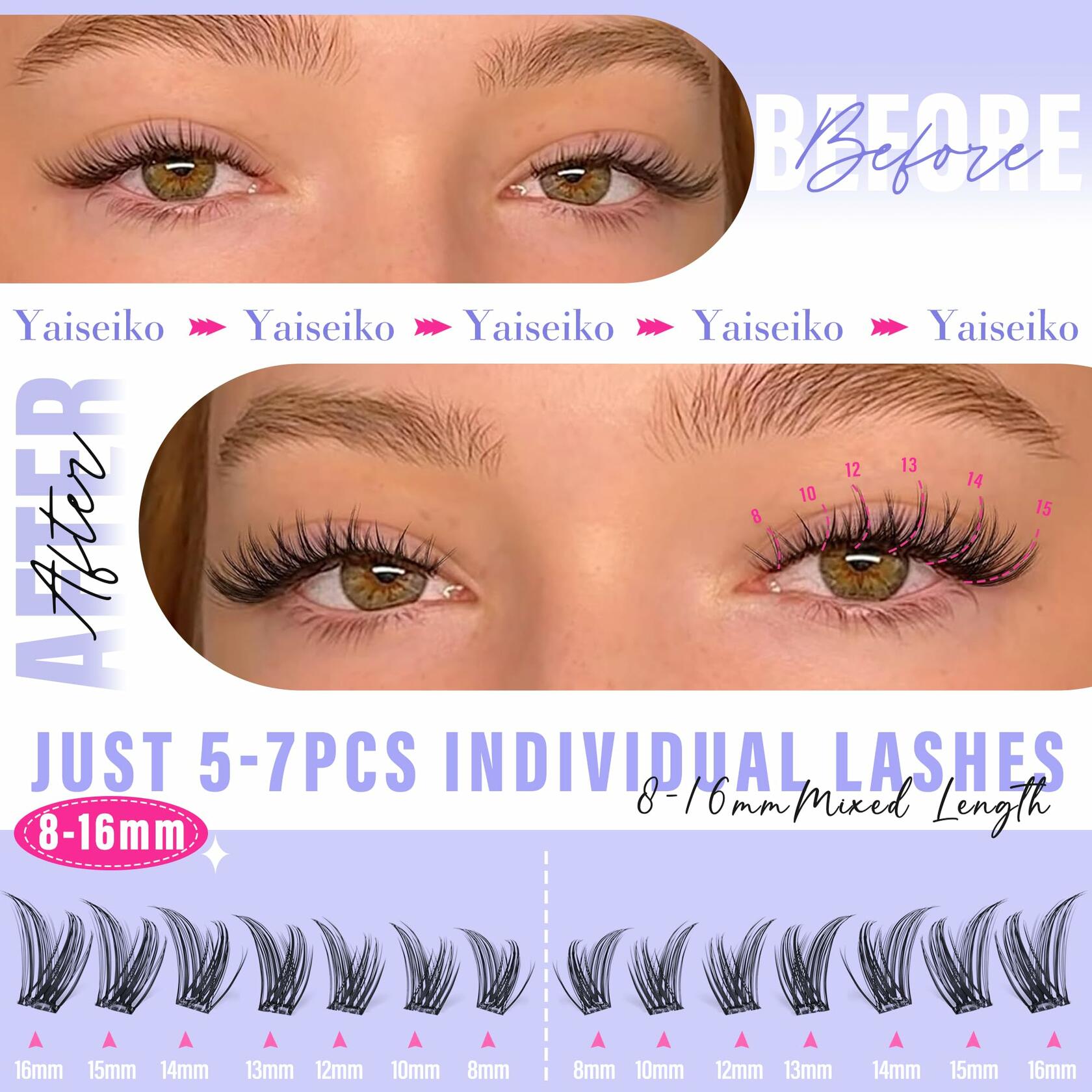 Yaiseiko Self Adhesive Lash Clusters Wispy C Curl 8-16MM 140Pcs