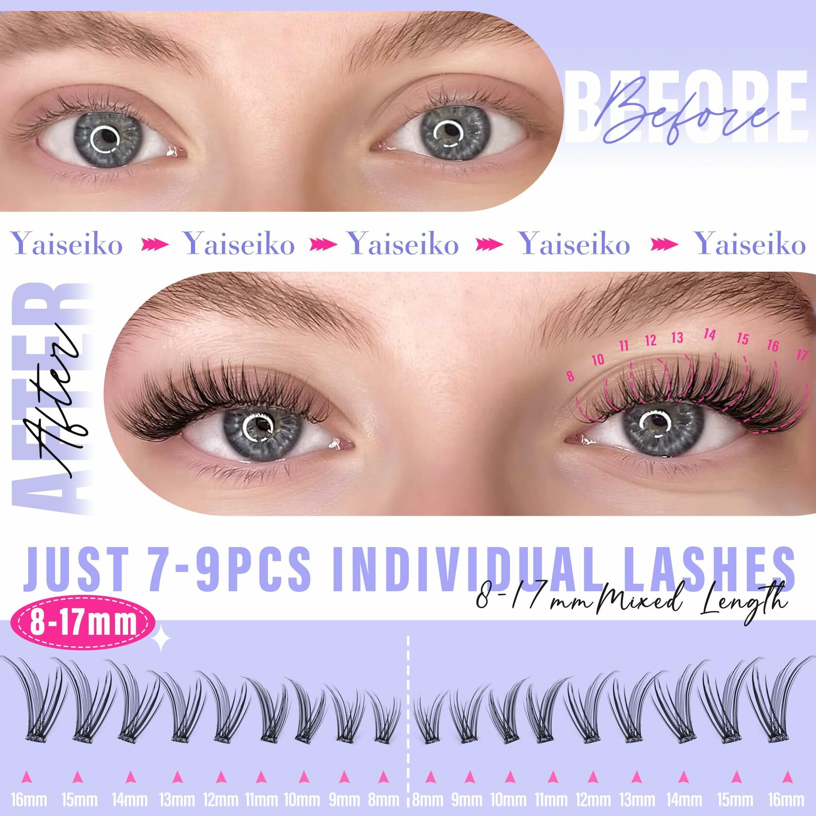 Yaiseiko Self Adhesive Lash Clusters Wispy C Curl 8-17MM 180Pcs