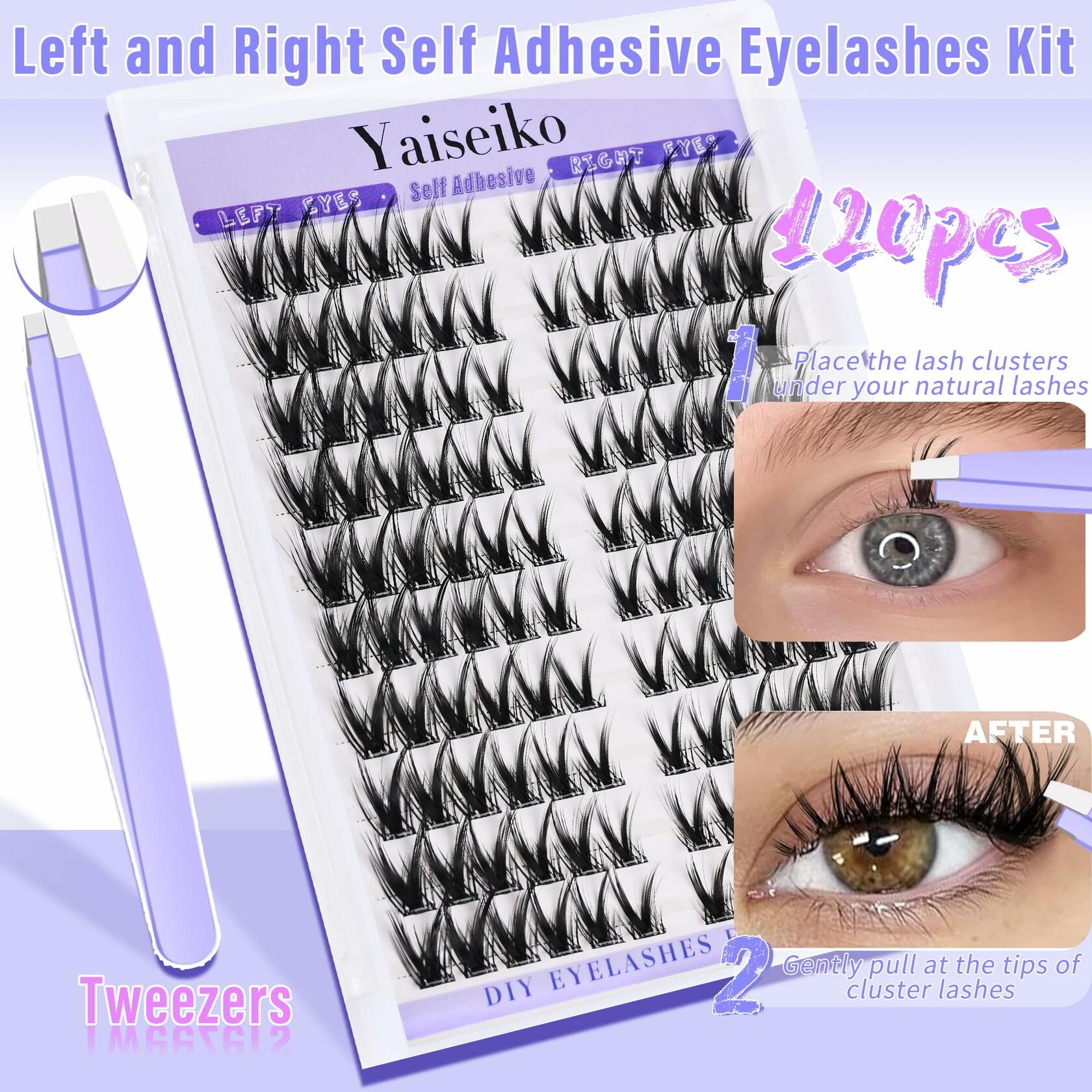 - 【Premium Self Adhesive Eyelashes Kit】Our self adhesive lashes are made with super fine quality silk fiber,contains 120 pcs 8-16mm pre - glued lashes clusters and 1 lash applicator.Simplify your beauty routine with our pre-sorted left and right eyelash clusters