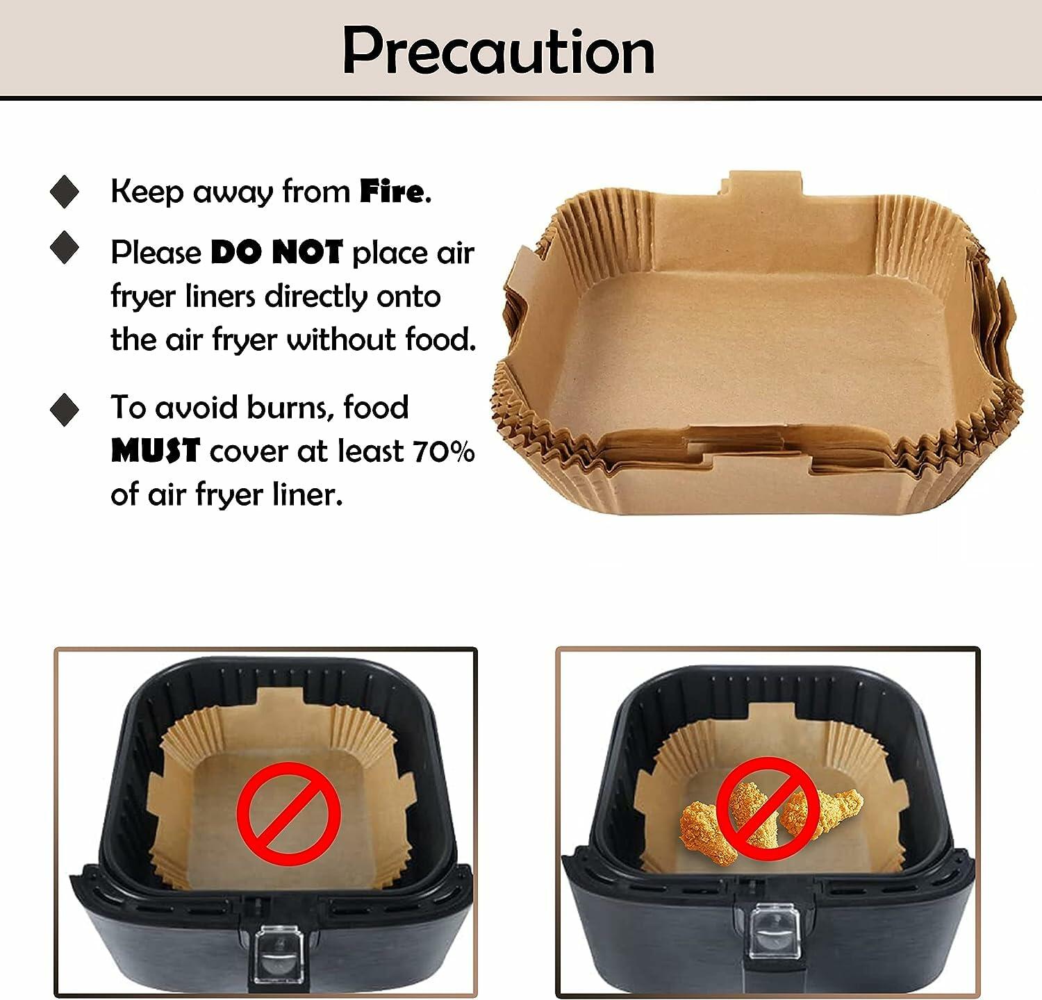 Baking paper for air fryer, oil-proof, food-grade parchment paper for microwave baking. Do you love baking but HATE cleaning up? Then this air fryer basket liners is Must Have of kitchen accessories for you. Why PAWBEE air fryer liner is a good helper in your kitchen? >These disposable paper liners can keep the air fryer basket away from food scraps, grease stains effectively. >eco-friendly materials: non-toxic, odorless, natural and have no effect on the taste of food. >saving time: help you speed up prep time, shorten cleanup time. >disposable: just throw away the paper pad after use, no need to clean the air fryer anymore. >wide applications: suitable for air fryers, microwave ovens, steamers, cookers, refrigerator. >sufficient quantities: 100PCS to meet your everyday cooking needs. Air Fryer Disposable Paper Liner Square Bowl Shape -color: Natural -quantity: 100PCS -diameter: 7.9 inch in diameter, 1.8 inch in height -material: Parchment paper Notices: - DO NOT put the liner into the air fryer with nothing. Food cover area of the parchment: 2/3. - Maximum heating time: 45 minutes (5-39 minutes extended with enough food). - Allowable error of manual measurement.