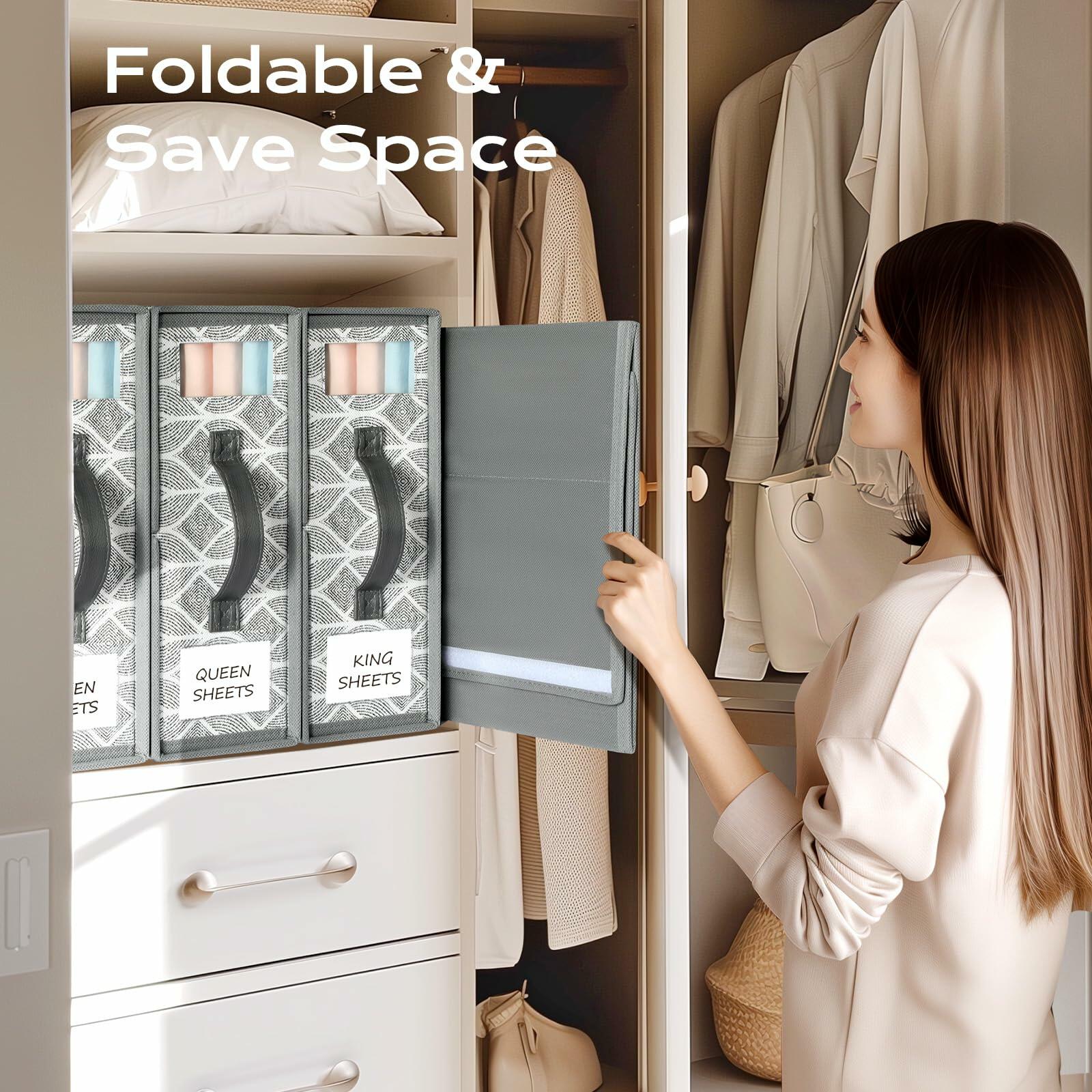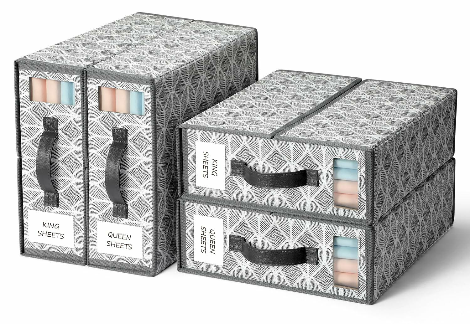 - Visible and Accessible: The clear window design of the Yecaye sheet organizers and storage lets you easily identify and access your bedsheets without the hassle of rummaging through. Save time and keep your linens neatly stored and easily accessible