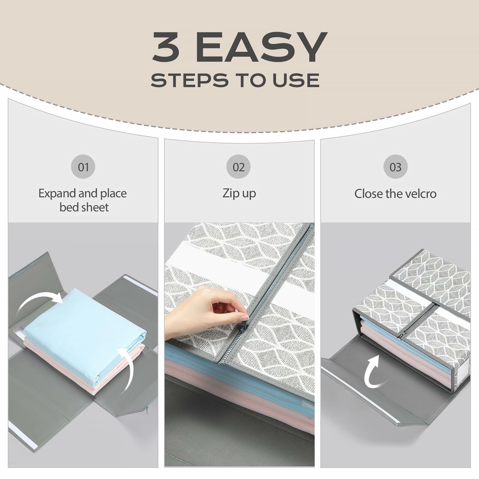 - Ideal Size for Various Uses - This folding sheet set organizers and storage measures 15 "L x13" W x 4.3"H fitting queen/king size sheets, a duvet cover, towel and blankets, perfect for bedrooms, closets, coatrooms, apartments, dorms, offering a versatile and space-saving storage solution