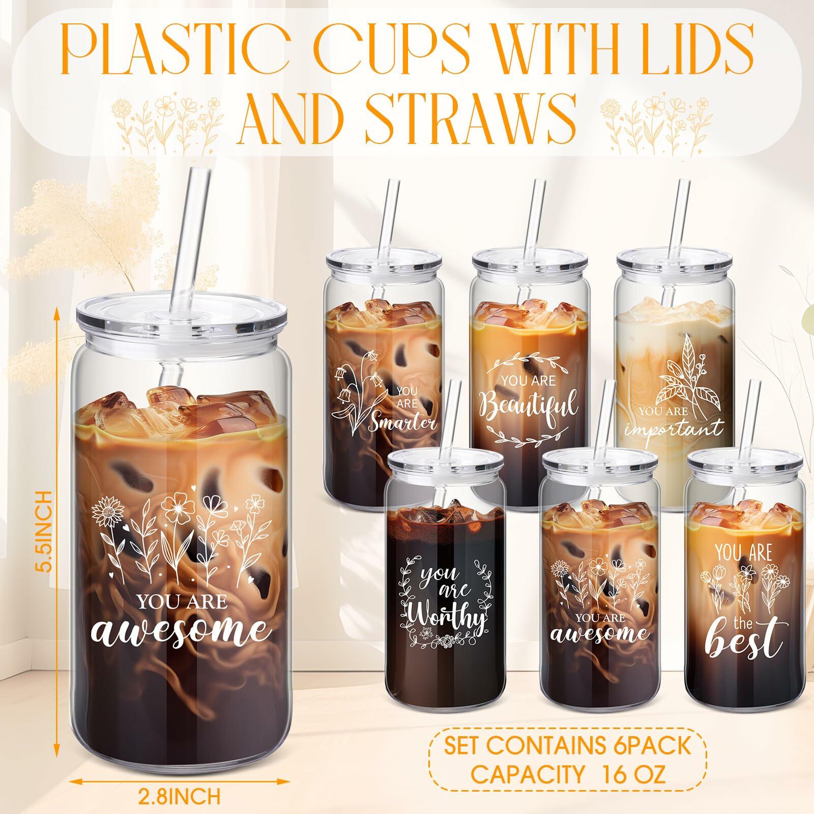 Yetene 6 Pcs 16oz Reusable Plastic Coffee Cups with Lid & Straw Praise