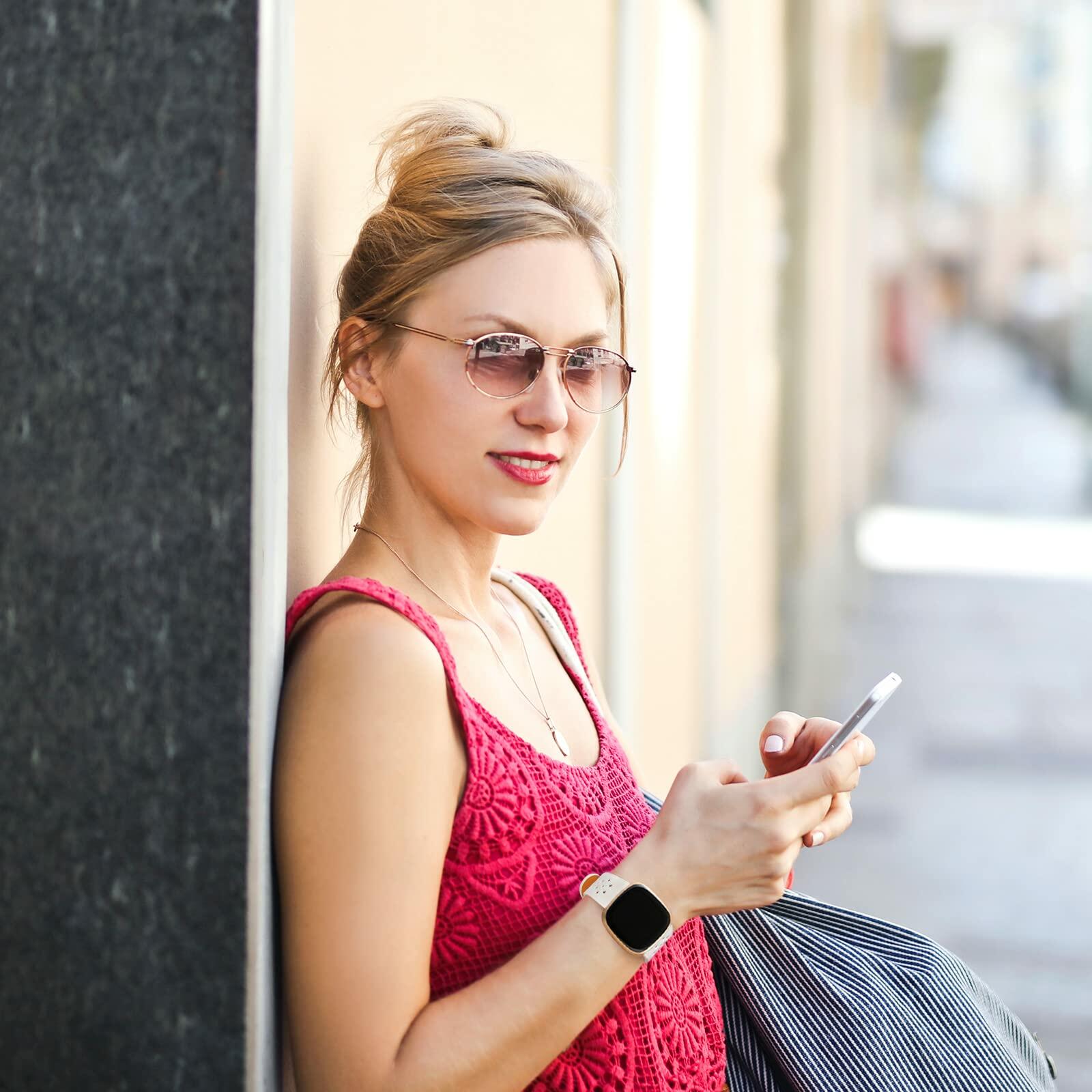 Yibcaiic Leather Bands Compatible Fitbit Versa 4 3 Sense Floral Hollow-out