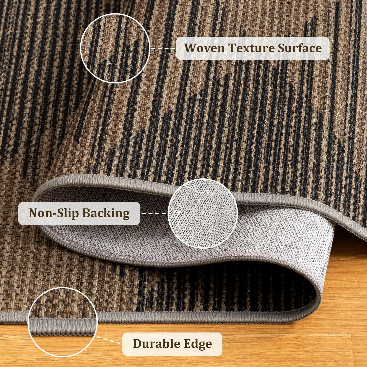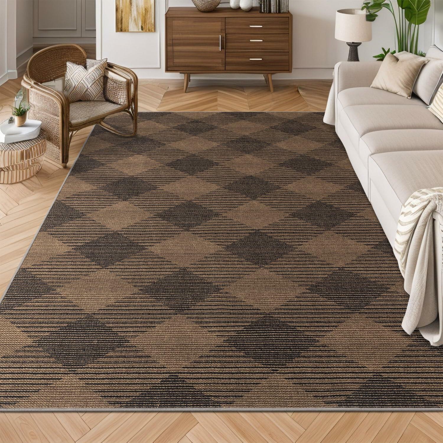 YIHOUSE Checkered Jute Rug 8x10 Brown Black Non Slip Indoor Outdoor