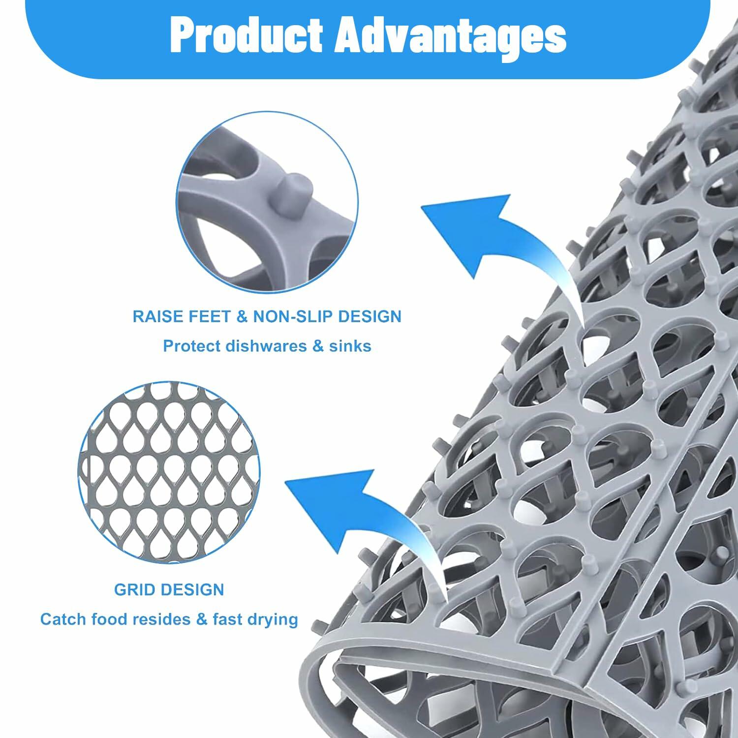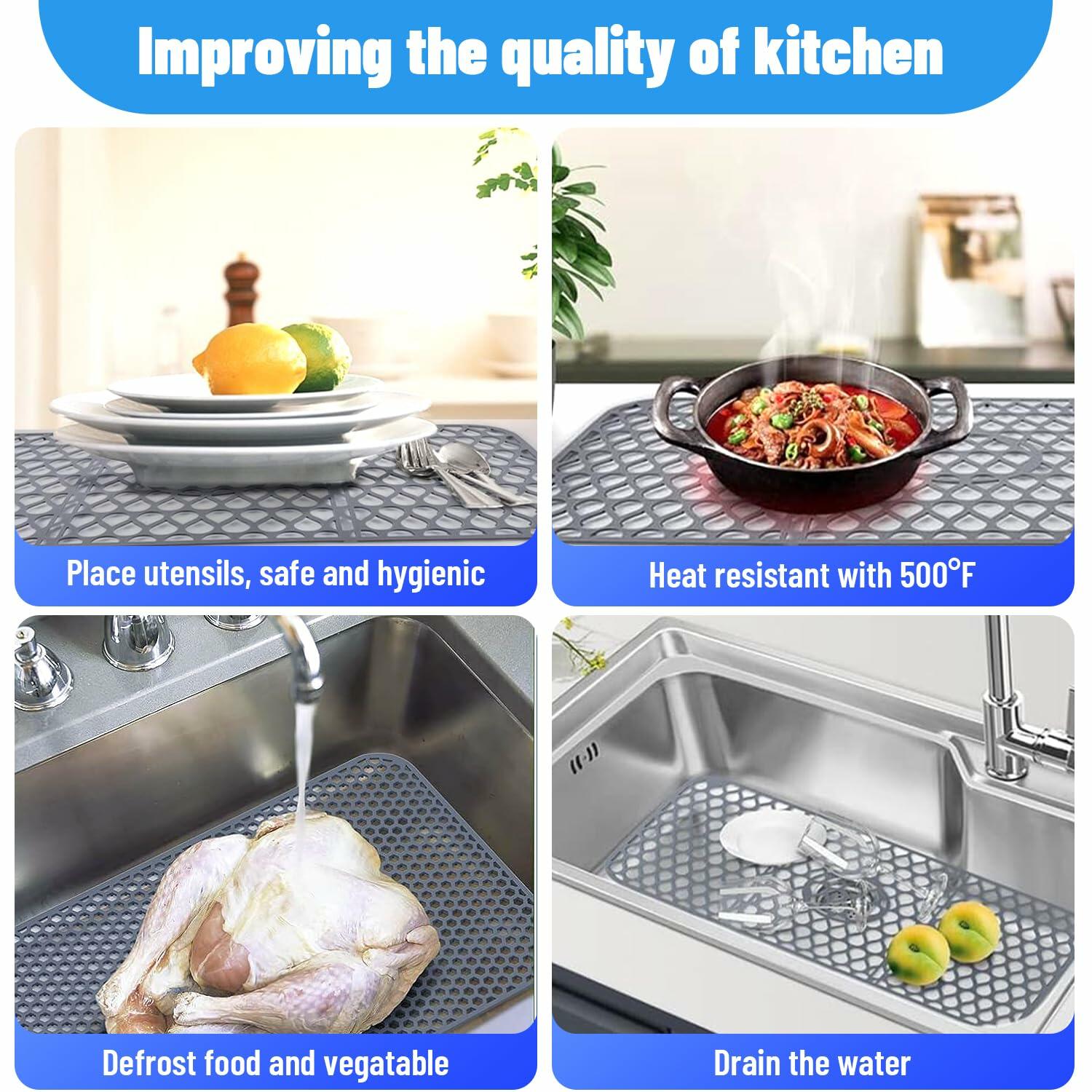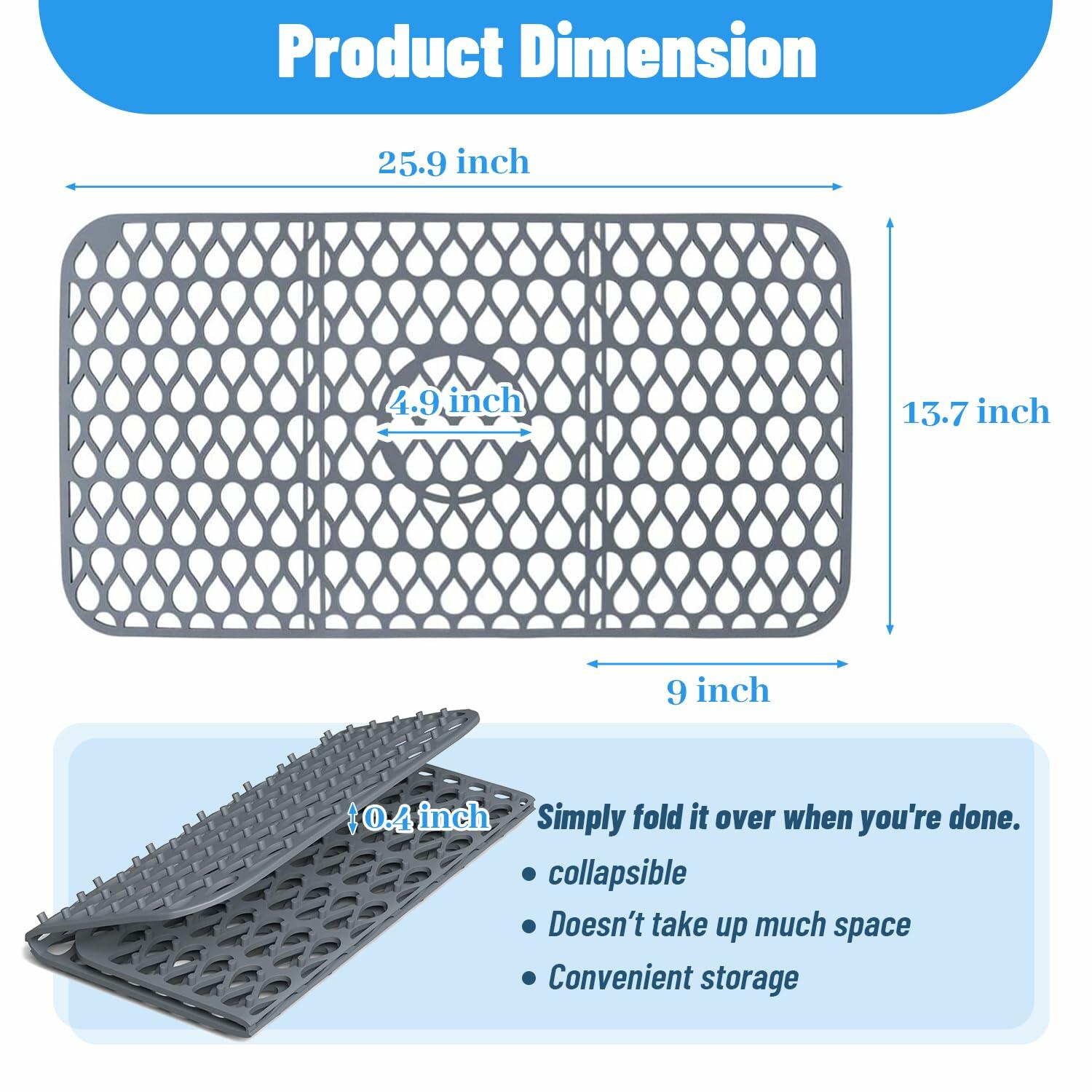 YIRAYUETT Silicone Non-Slip Kitchen Sink Grid Mat 25.9x13.7 Gray