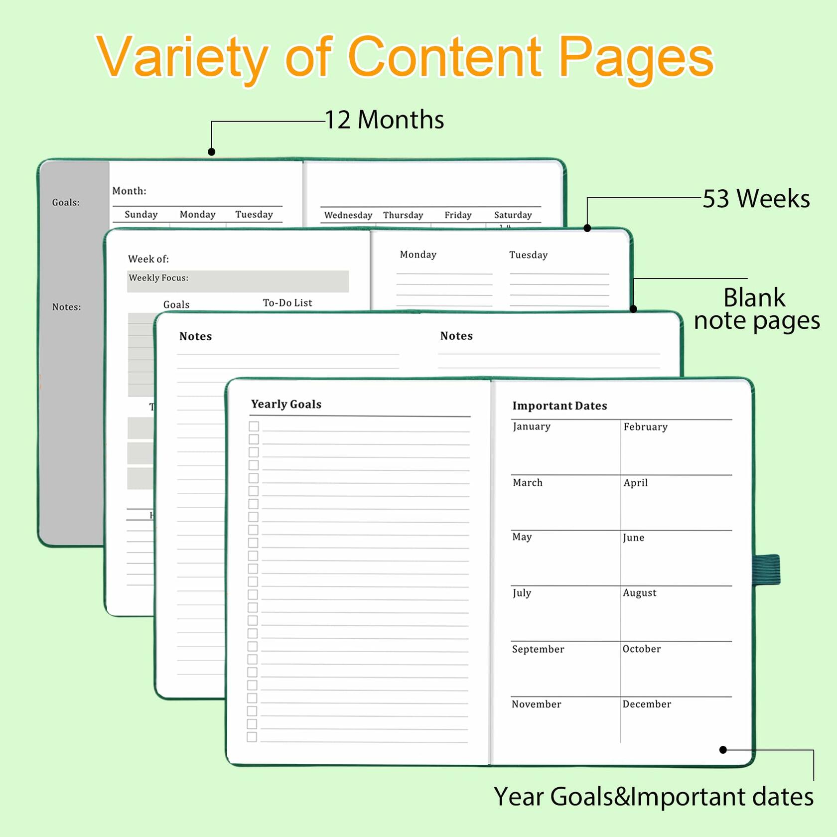 - 【Additional Planner Features】– This planner is equipped with a small inner pocket for storing small items and includes a variety of useful pages to keep you organized. It features yearly goals pages, important dates pages, and extra notes pages to accommodate your scheduling needs.