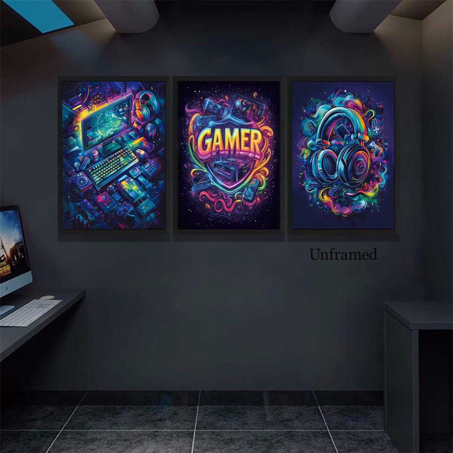 - Game Room Wall Decor:Immerse yourself in the world of gaming with our Gaming Posters Set of 3. Each piece captures the excitement and energy of gaming culture, transporting you to virtual worlds filled with adventure and excitement. Whether you're a seasoned gamer or just starting out, these artworks add a sense of excitement and inspiration to any space, making them perfect for bedrooms, game rooms, or even offices.