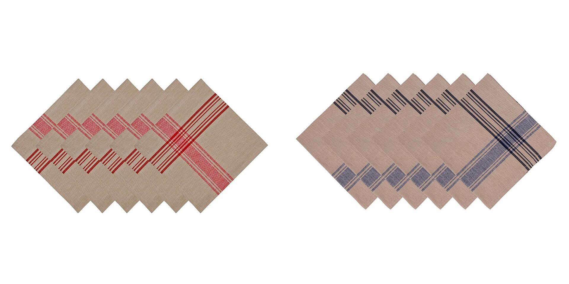 YOURTABLECLOTH SET OF 6 NAUTICAL BLUE FRENCH STYLE FABRIC NAPKINS