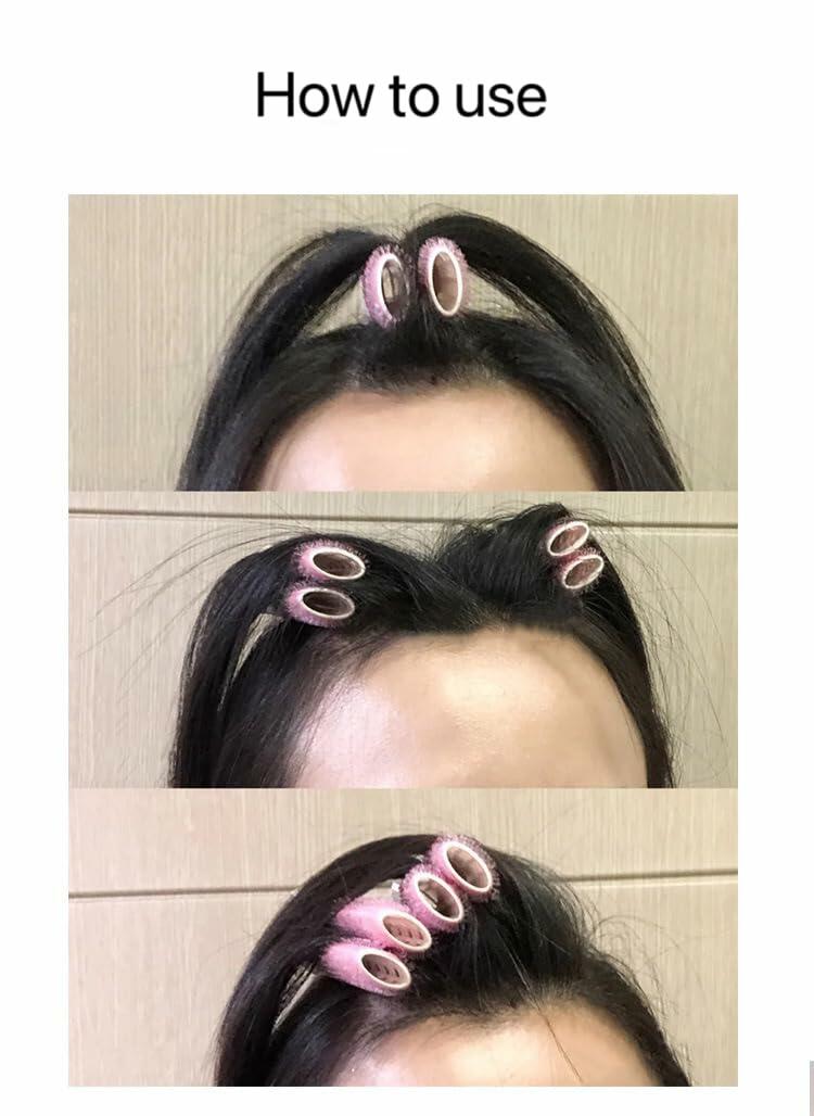 YSSZAM 4PCS Pink Hair Rollers with Clips Volumizing Bangs Curler Self Grip