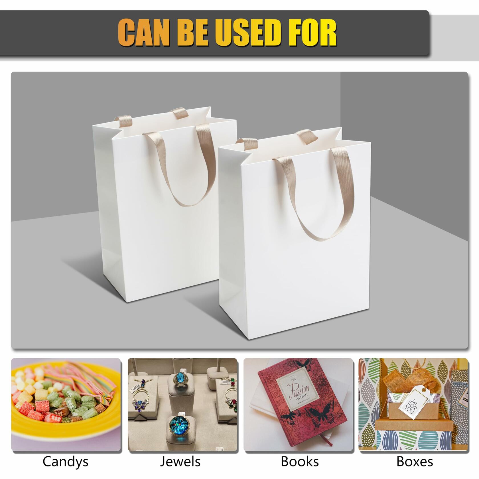 - 1. Perfect Quantity and Dimensions - Get 20Pcs of 8"L x4.25"W x10.5"H thick white gift bags that are perfect for items like books, skin care, candles, T-shirts, and more. Kindly refer to the 3rd picture to ensure it matches your requirements.