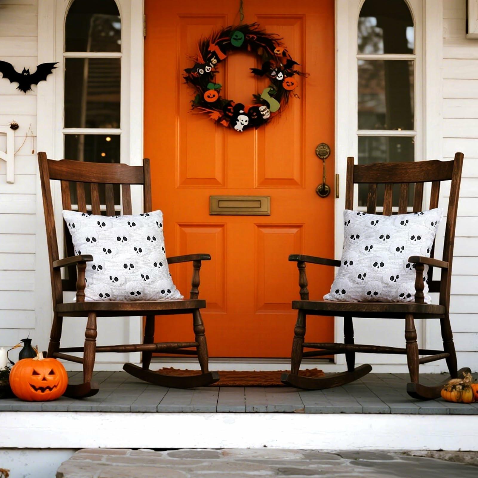 Skull Halloween Decor-Throw Pillow Covers 18x18in set of 2,Retro Plush Pillow Case for Couch Fall Holiday Outdoor Black Decorations