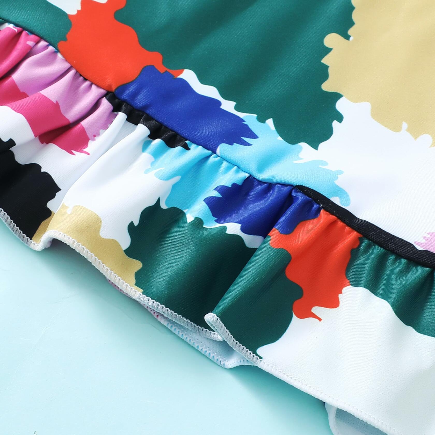 - Tankini top and high waist shorts bikini set for girls features vibrant pattern and cute ruffle hem. Classic and Stylish design give little girl a happy summer time.