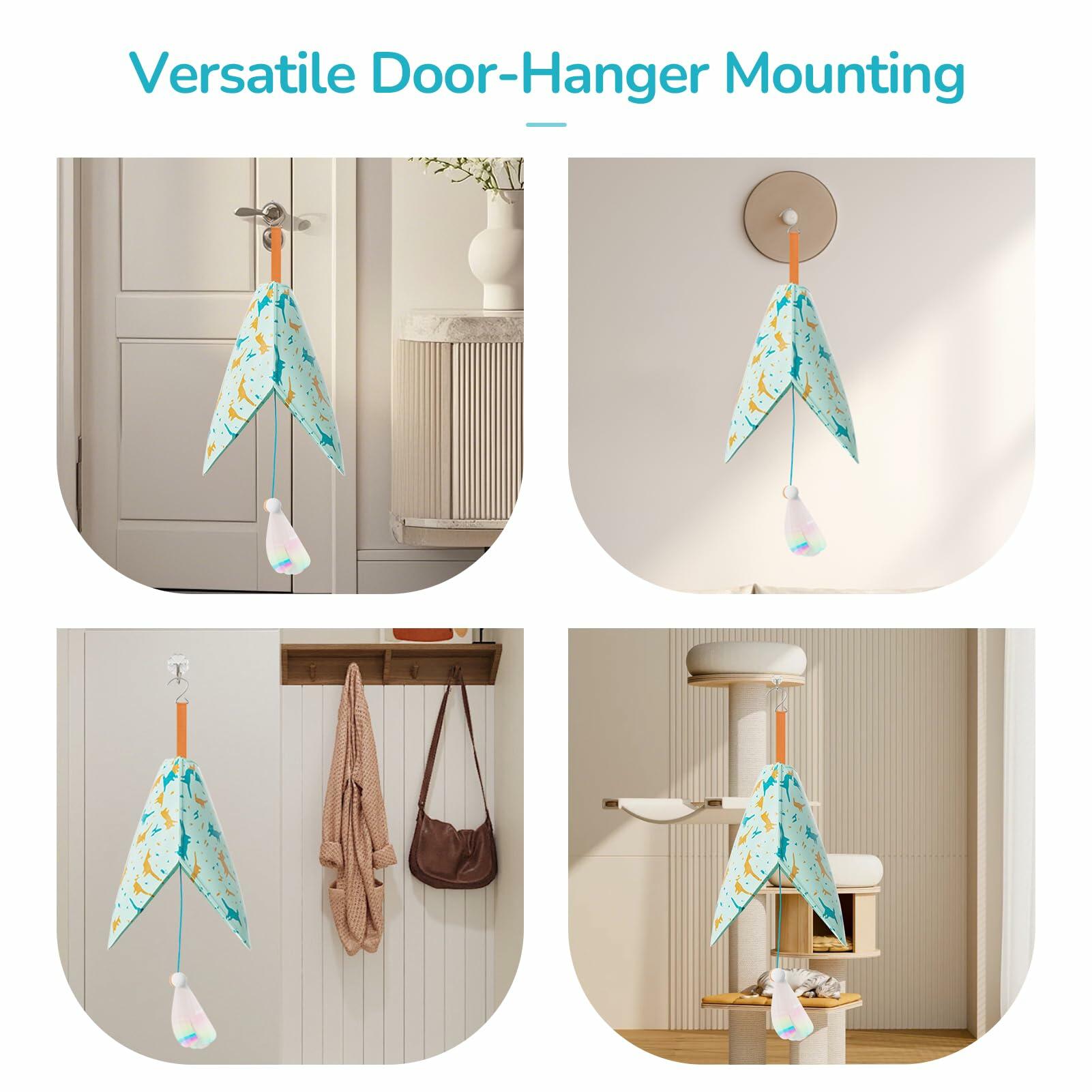 - Door-Hanger Delight: Easily attach it to a door handle! This unique position creates a fresh, exciting challenge that strongly appeals to your cat's curiosity, offering a novel way to play with interactive cat toys for indoor cats.