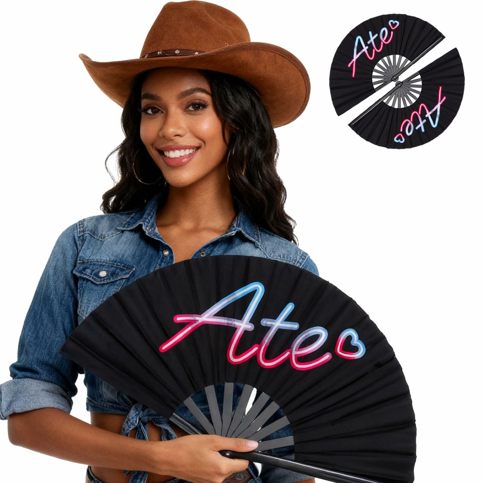 ZESTLASH 2 Pack 13 Inch Clack Popping Line Dancing Fans Large Foldable Black